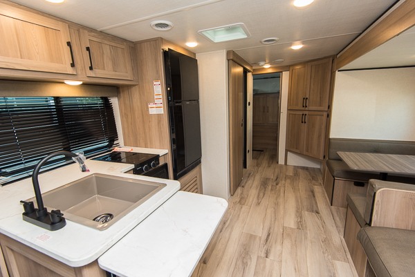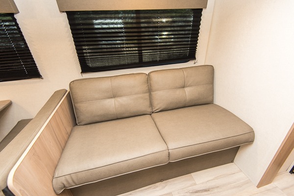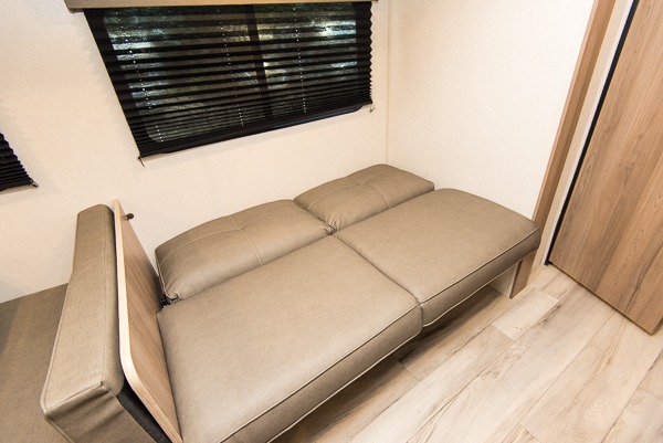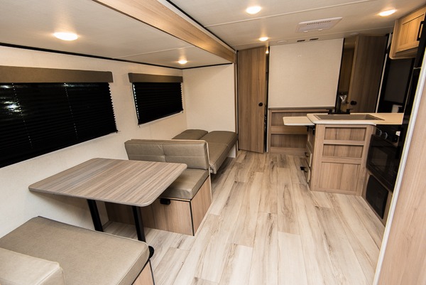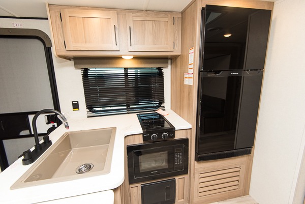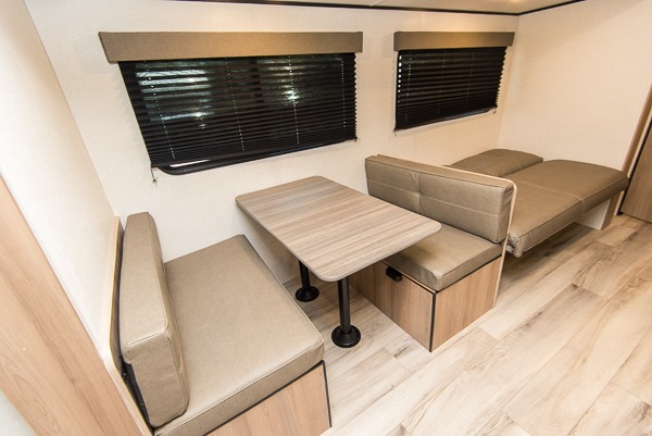With any Coleman travel trailer, you will experience Keystone's quality throughout, plus enjoy lightweight towing to the campground or RV park. There is a walkable roof, tinted safety glass windows, and a power awning outdoors for an inviting space to relax. The friction hinge entry door is another convenience you'll appreciate, and there is Furrion backup camera prep if you want the option to make parking easier. Inside, you'll find blackout night shades, a 6' 8" ceiling height, bedside outlets, and many more comforts.
