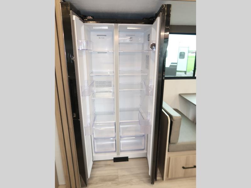 Camping trips are made complete in this travel trailer with a large slide and lots of comfort! There is theater seating in direct view of the 65" TV and fireplace for cozy evenings indoors, and the booth dinette provides a place to dine, play games, and let a guest sleep over. The chef of your crew can make meals on the three burner range or in the air fryer/convection microwave, and there is plenty of counter space to set out a veggie tray while dinner is being made. A full bath and front private bedroom include sliding doors to save on space, and you're sure to get a great night's rest on the king bed!