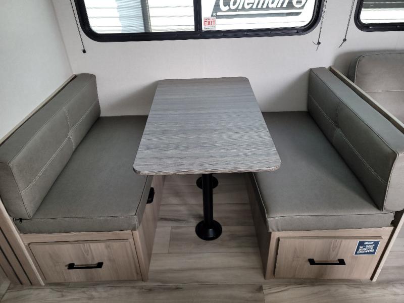 The Coleman Lantern travel trailers by Keystone include innovative features for the outdoor enthusiasts! They are built with a smooth front metal, a walkable roof, and a one-piece heated and enclosed underbelly that will help extend your camping season. Additional exterior features include a shower with hot and cold water, quick drop stabilizer jacks and a power tongue jack, plus a full pass-through storage with extra tall doors. The interior is just as impressive with its blackout night shades, solid surface kitchen countertops, bedside outlets, and extra large 30" x 40" shower to name a few comforts. Each travel trailer also includes a Suburban tankless water heater for endless hot showers, plus Keystones Exclusives such as in-floor heating ducts, Tru-fit slide construction, and more!