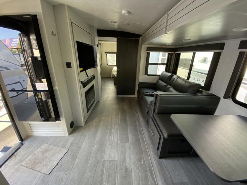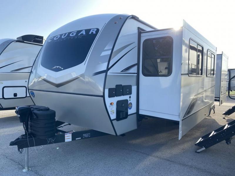The Keystone Cougar Half-Ton fifth wheel and travel trailers are known as one of America's favorites for a reason! Some of those reasons are the exclusive features that come from Keystone, like the Winegard Air 360+ omni-directional rooftop antenna, the in-floor heating ducts, and the Hyper Deck flooring. The Cougar Half-Ton has a Climate Guard protection package to keep you safe during inclement weather, along with two roof attic vents, PEX plumbing and more. Use the 17" Furrion range with Piezo ignition to create all of those familiar meals from home, and enjoy endless hot showers with the Girard tankless on-demand water heater!