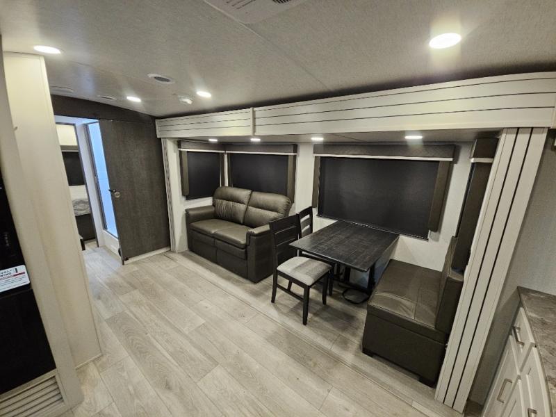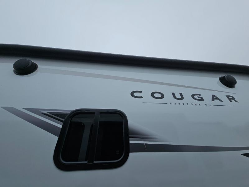 The Keystone Cougar Half-Ton fifth wheel and travel trailers are known as one of America's favorites for a reason! Some of those reasons are the exclusive features that come from Keystone, like the Winegard Air 360+ omni-directional rooftop antenna, the in-floor heating ducts, and the Hyper Deck flooring. The Cougar Half-Ton has a Climate Guard protection package to keep you safe during inclement weather, along with two roof attic vents, PEX plumbing and more. Use the 17" Furrion range with Piezo ignition to create all of those familiar meals from home, and enjoy endless hot showers with the Girard tankless on-demand water heater!