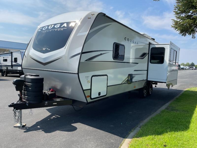 The Keystone Cougar Half-Ton fifth wheel and travel trailers are known as one of America's favorites for a reason! Some of those reasons are the exclusive features that come from Keystone, like the Winegard Air 360+ omni-directional rooftop antenna, the in-floor heating ducts, and the Hyper Deck flooring. The Cougar Half-Ton has a Climate Guard protection package to keep you safe during inclement weather, along with two roof attic vents, PEX plumbing and more. Use the 21" Furrion range with Piezo ignition to create all of those familiar meals from home, and take charge of how you camp with the SolarFlex Protect that comes standard, or upgrade to a larger package or lithium batteries for even more off-grid capabilities.