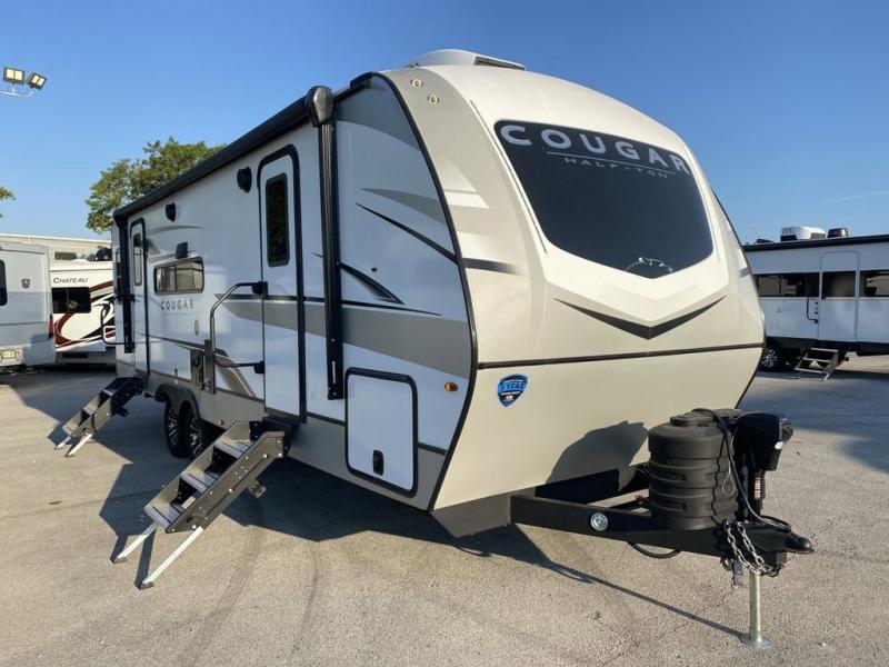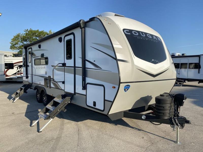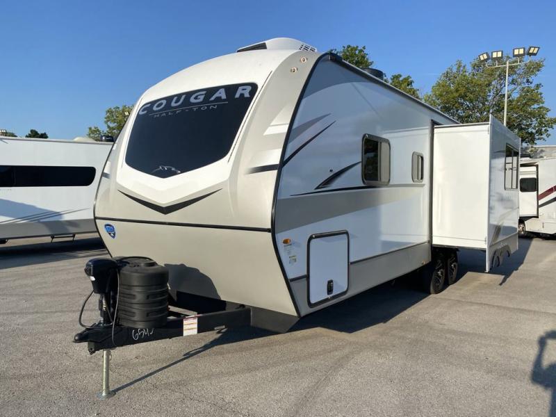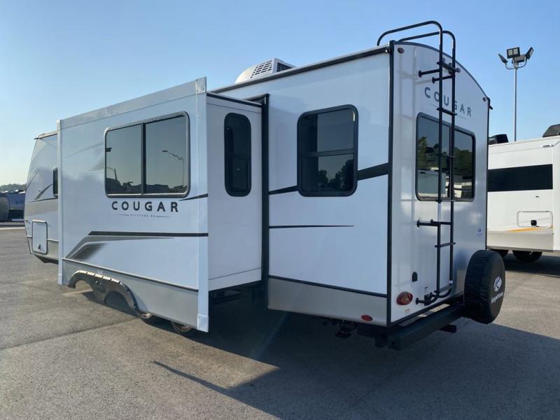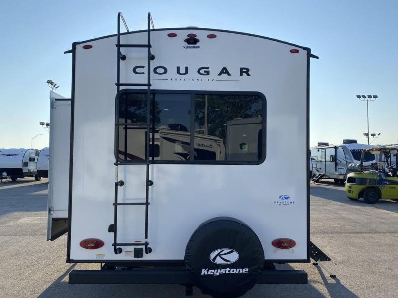 The Keystone Cougar Half-Ton fifth wheel and travel trailers are known as one of America's favorites for a reason! Some of those reasons are the exclusive features that come from Keystone, like the Winegard Air 360+ omni-directional rooftop antenna, the in-floor heating ducts, and the Hyper Deck flooring. The Cougar Half-Ton has a Climate Guard protection package to keep you safe during inclement weather, along with two roof attic vents, PEX plumbing and more. Use the 21" Furrion range with Piezo ignition to create all of those familiar meals from home, and take charge of how you camp with the SolarFlex Protect that comes standard, or upgrade to a larger package or lithium batteries for even more off-grid capabilities.