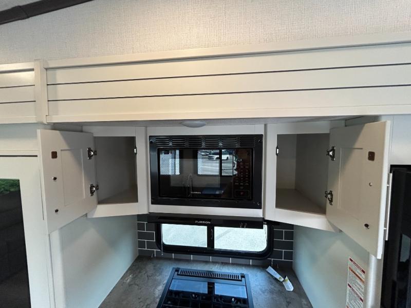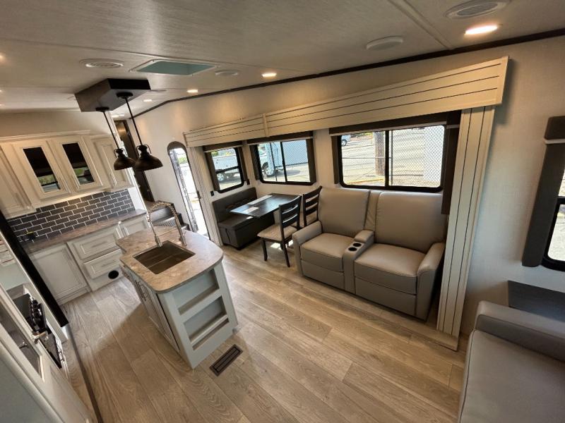 The Keystone Cougar Half-Ton fifth wheel and travel trailers are known as one of America's favorites for a reason! Some of those reasons are the exclusive features that come from Keystone, like the Winegard Air 360+ omni-directional rooftop antenna, the in-floor heating ducts, and the Hyper Deck flooring. The Cougar Half-Ton has a Climate Guard protection package to keep you safe during inclement weather, along with two roof attic vents, PEX plumbing and more. Use the 21" Furrion range with Piezo ignition to create all of those familiar meals from home, and enjoy endless hot showers with the Girard tankless on-demand water heater!