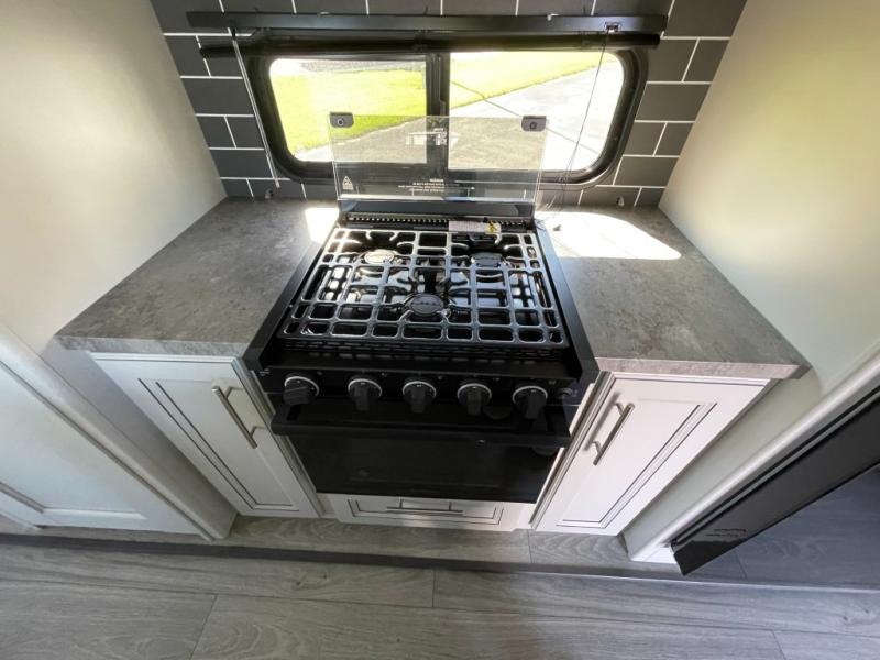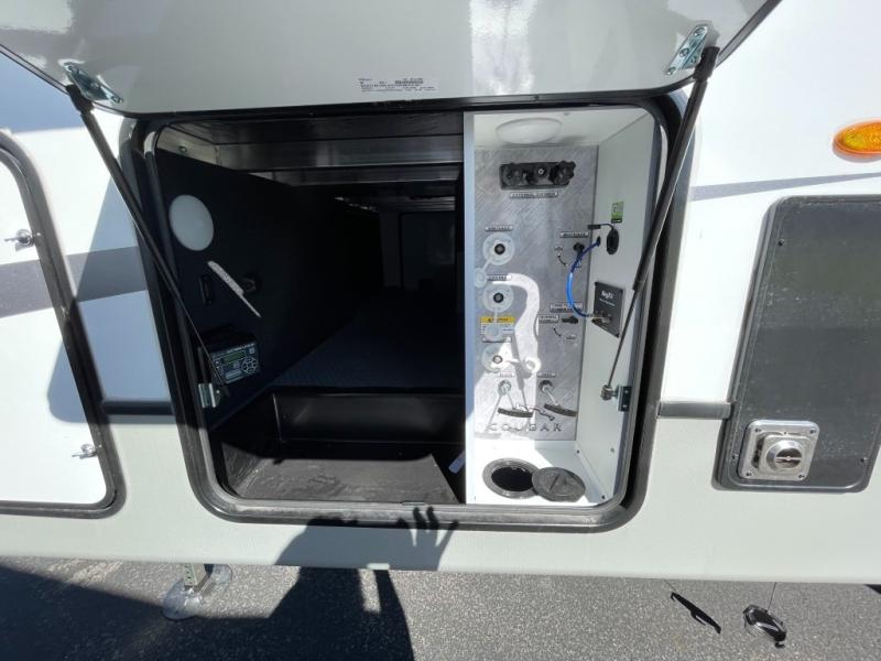The Keystone Cougar Half-Ton fifth wheel and travel trailers are known as one of America's favorites for a reason! Some of those reasons are the exclusive features that come from Keystone, like the Winegard Air 360+ omni-directional rooftop antenna, the in-floor heating ducts, and the Hyper Deck flooring. The Cougar Half-Ton has a Climate Guard protection package to keep you safe during inclement weather, along with two roof attic vents, PEX plumbing and more. Use the 21" Furrion range with Piezo ignition to create all of those familiar meals from home, and enjoy endless hot showers with the Girard tankless on-demand water heater!