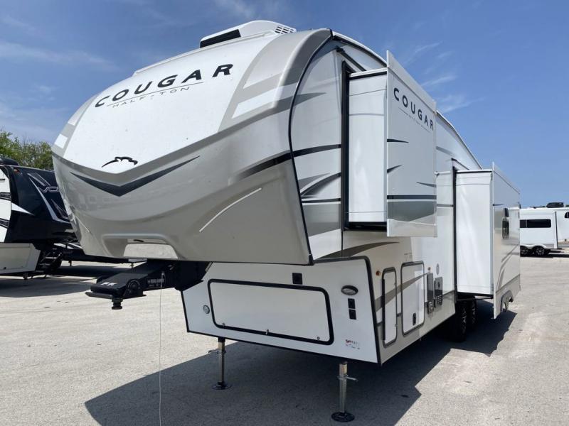 The Keystone Cougar Half-Ton fifth wheel and travel trailers are known as one of America's favorites for a reason! Some of those reasons are the exclusive features that come from Keystone, like the Winegard Air 360+ omni-directional rooftop antenna, the in-floor heating ducts, and the Hyper Deck flooring. The Cougar Half-Ton has a Climate Guard protection package to keep you safe during inclement weather, along with two roof attic vents, PEX plumbing and more. Use the 21" Furrion range with Piezo ignition to create all of those familiar meals from home, and enjoy endless hot showers with the Girard tankless on-demand water heater!