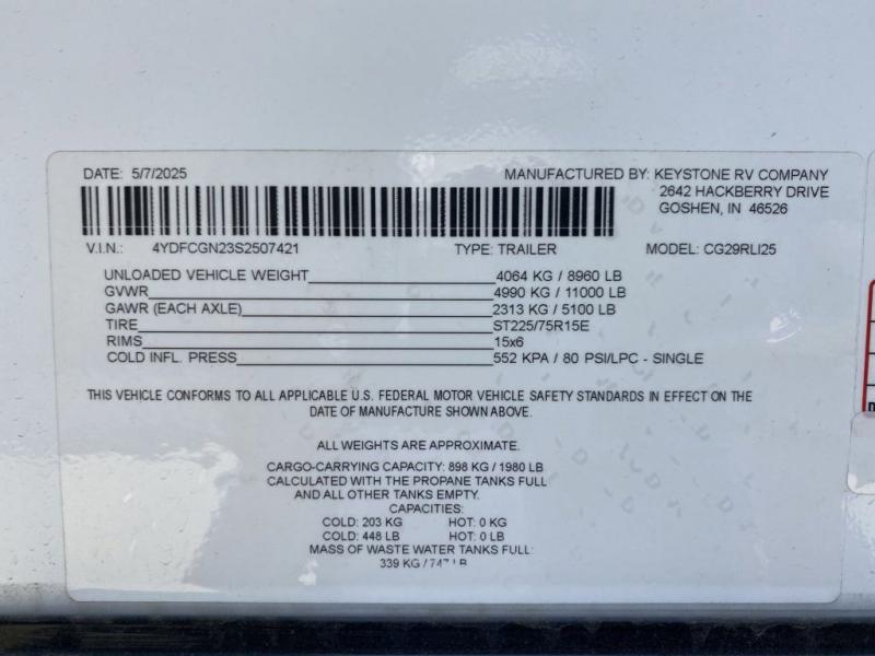 2025 Closeout Sale!Keystone Cougar Half-Ton fifth wheel 29RLI highlights: