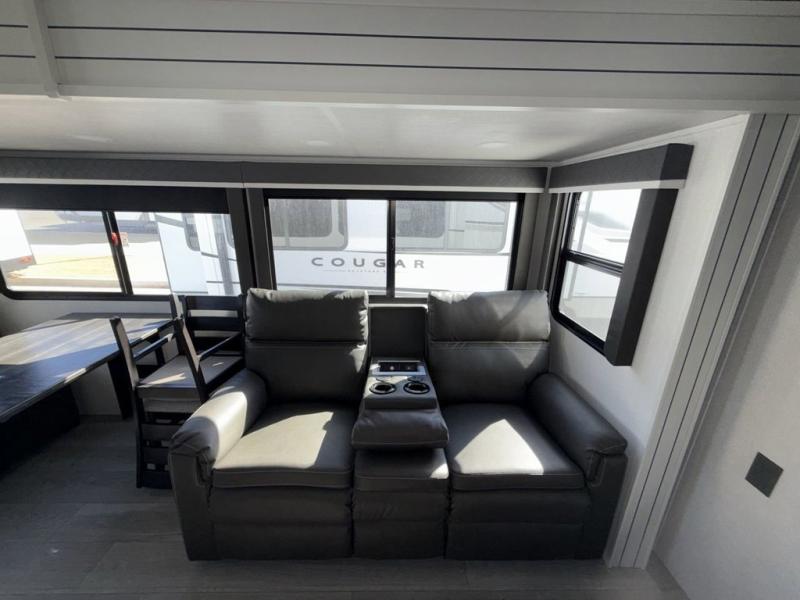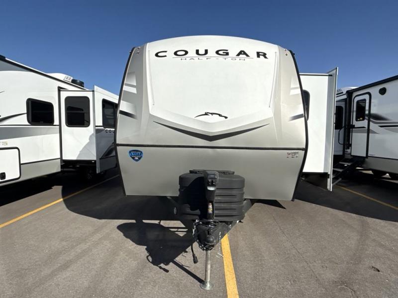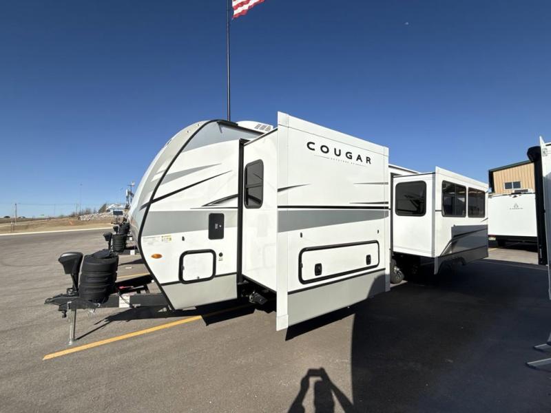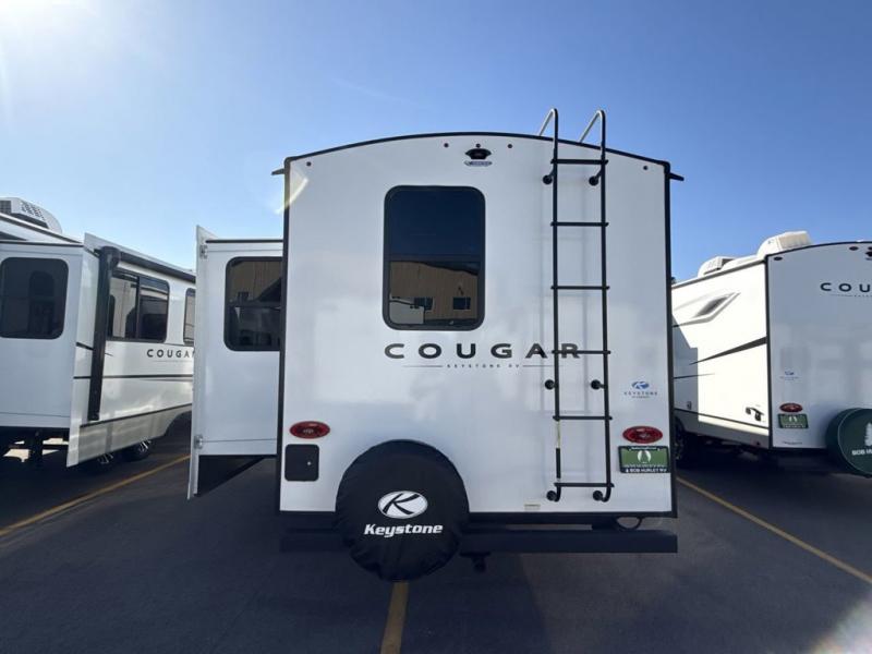 The Keystone Cougar Half-Ton fifth wheel and travel trailers are known as one of America's favorites for a reason! Some of those reasons are the exclusive features that come from Keystone, like the Winegard Air 360+ omni-directional rooftop antenna, the in-floor heating ducts, and the Hyper Deck flooring. The Cougar Half-Ton has a Climate Guard protection package to keep you safe during inclement weather, along with two roof attic vents, PEX plumbing and more. Use the 21" Furrion range with Piezo ignition to create all of those familiar meals from home, and enjoy endless hot showers with the Girard tankless on-demand water heater!