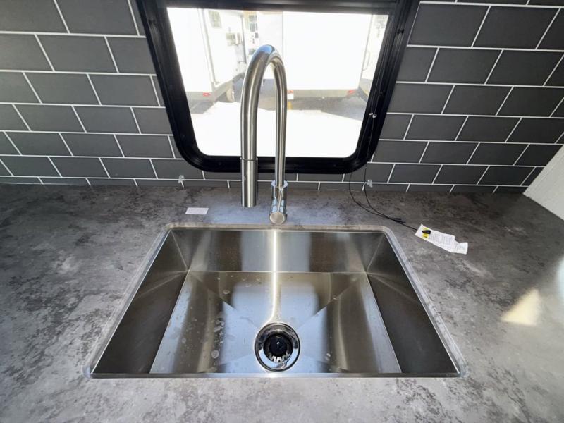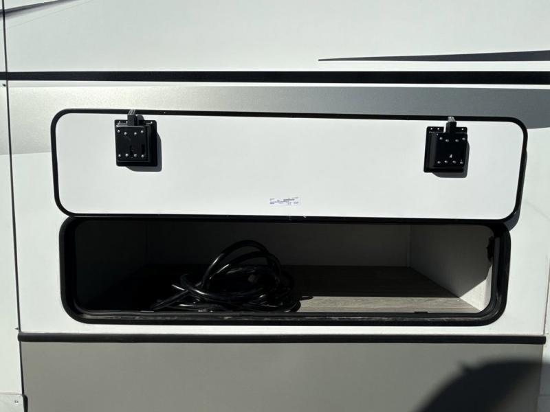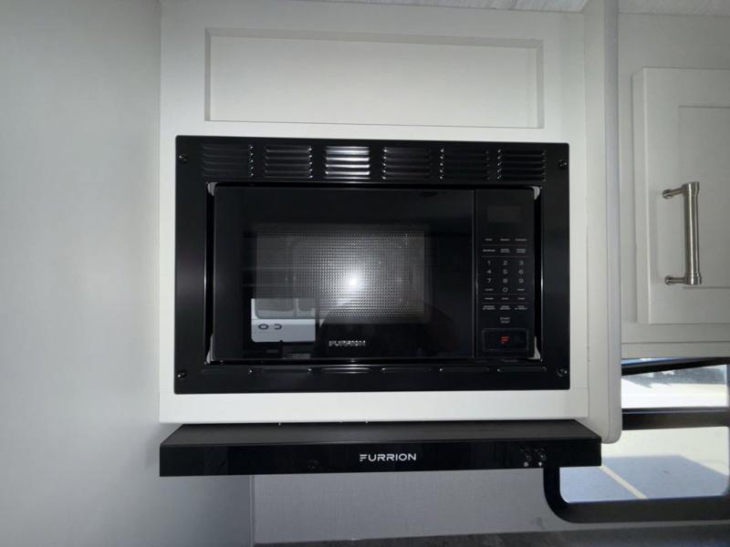 How does a queen bed slide with an optional king bed in the master suite sound? With this Cougar Half-Ton travel trailer, you'll have extra floor space and a full-width wardrobe allowing you to stay at your favorite campsite for long periods of time. The second slide located in the main living and kitchen area opens up this space for you to enjoy time spent inside just as much as outdoor adventures. The furniture even doubles as sleeping space for the kids or overnight guests. The rear kitchen layout is a convenience, and you will appreciate all the counter space for preparing and serving meals. You will find hidden storage behind the entertainment center, and next to the entertainment center is a pantry where you can store your favorite snacks.
