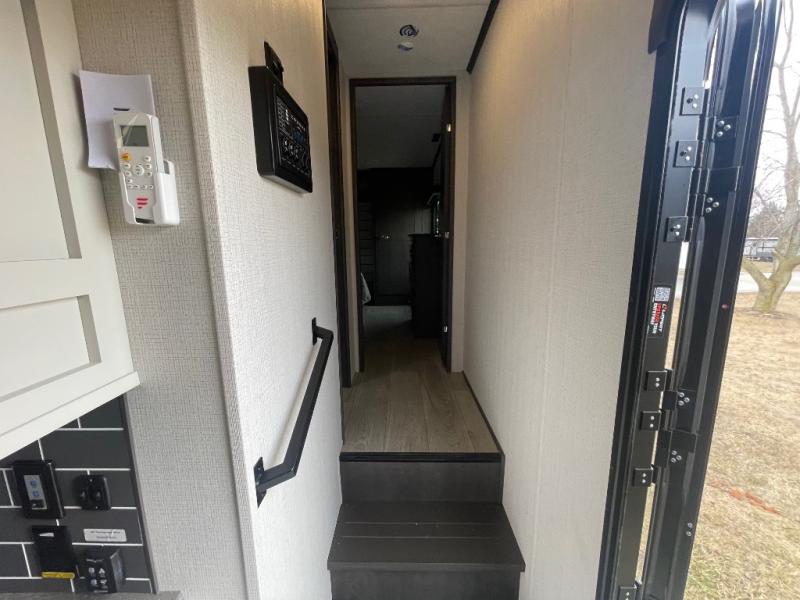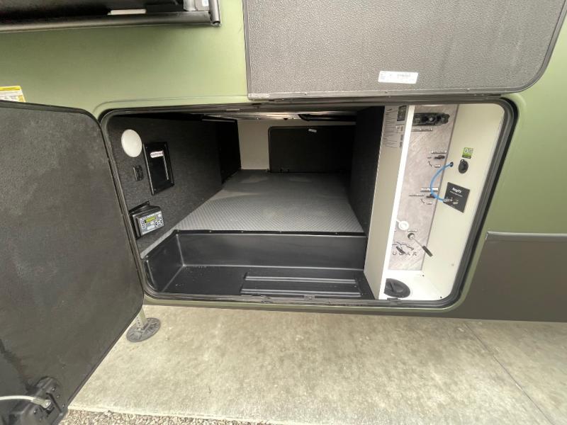 - Exterior Convenience: Electric four-point auto leveling, friction-hinge entry door, Lippert SolidStep®, and a convenience center.