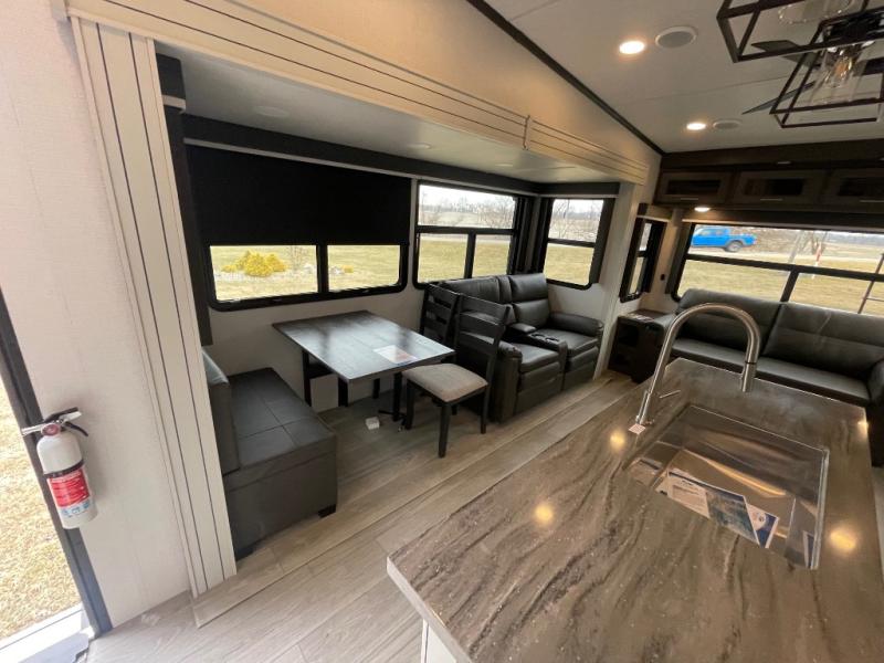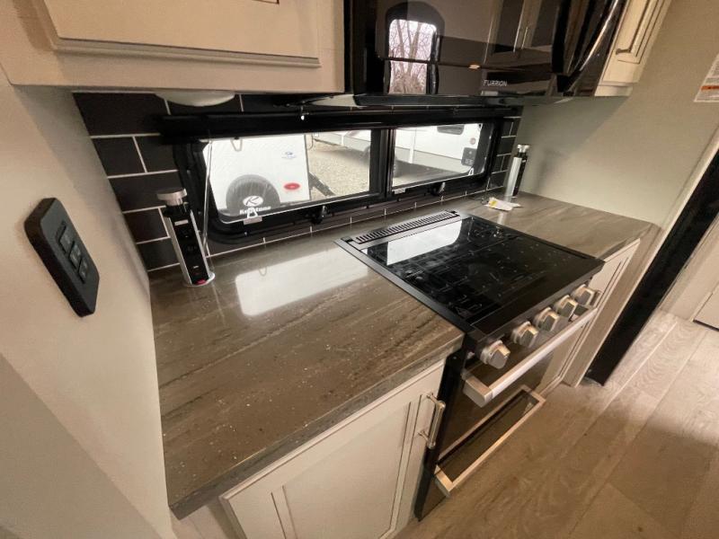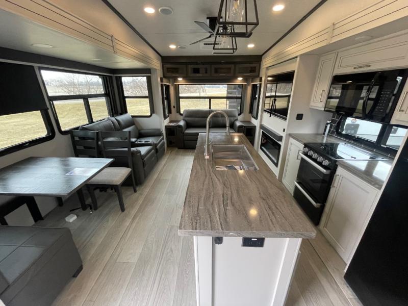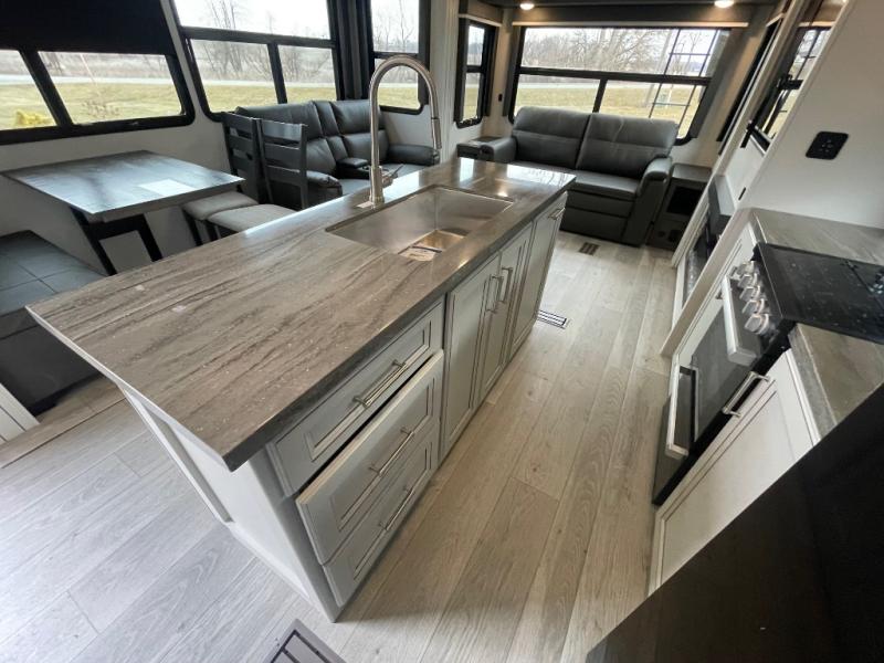 - Spacious Interior: Dual opposing slides and a kitchen island provide ample living and cooking space.