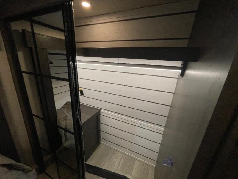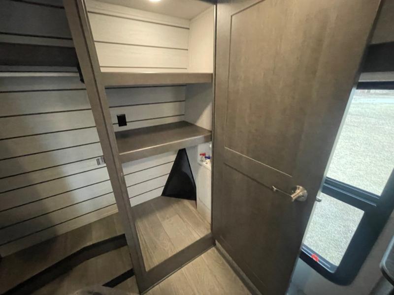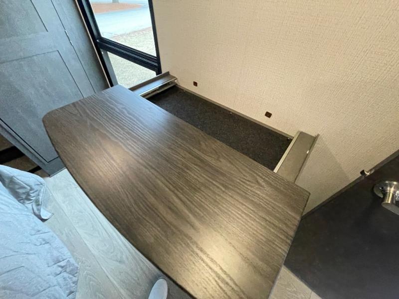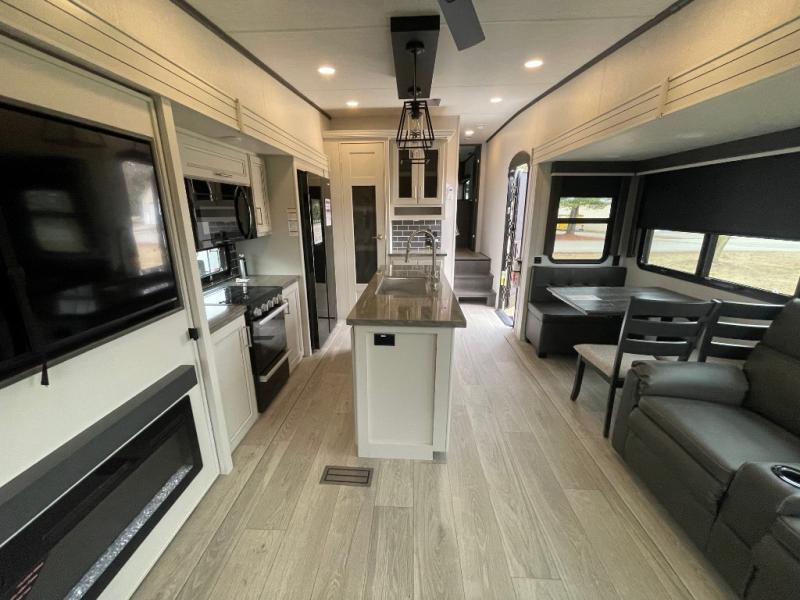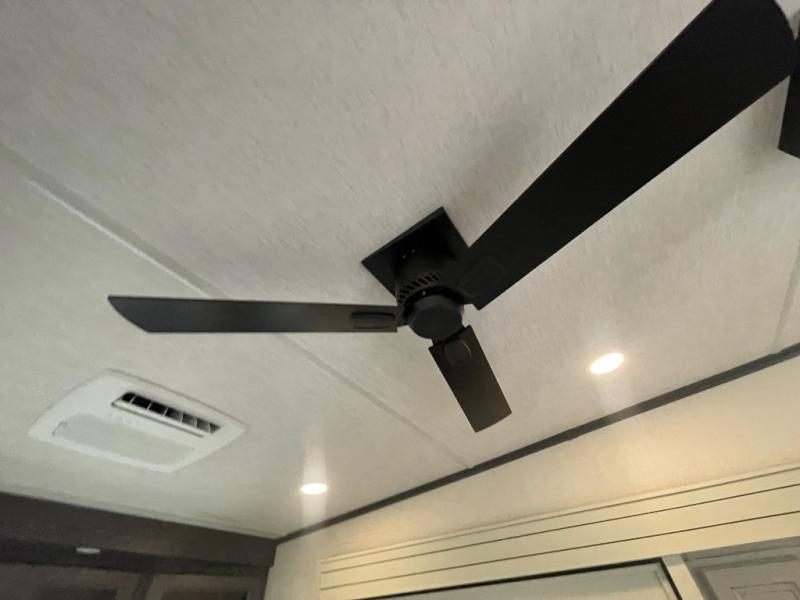 - Comfort Enhancements: Night roller shades, a 5,500 BTU electric fireplace, and Max Air exhaust fan with a rain sensor.