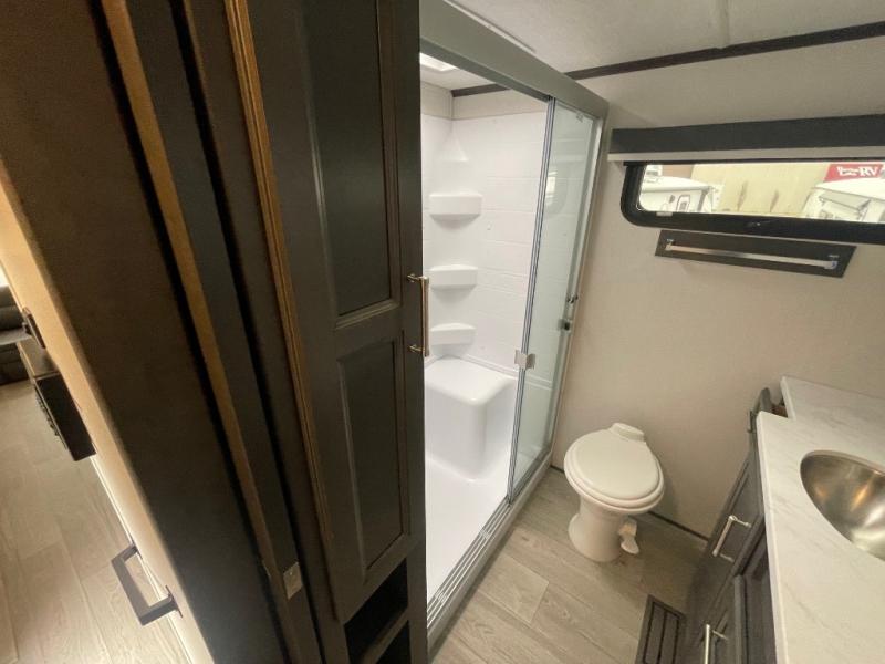 - Outdoor Living: Two awnings, an exterior pass-through storage, and an outside shower enhance your camping experience.