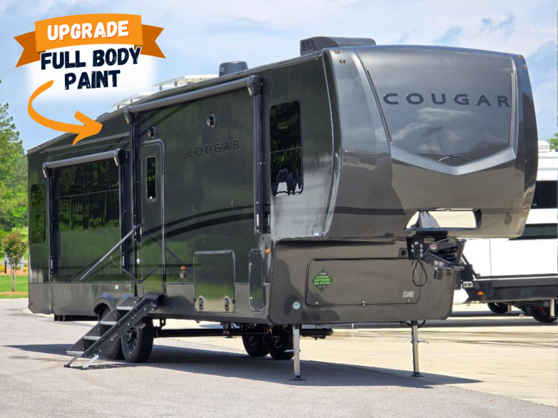 Spend more time having fun and less time worrying about your RV with the Keystone Cougar fifth wheel! These units have all that you will need for excellent vacations. The interior comes with 5/8" one-piece DynaSpan® flooring, tall slide outs for added comfort and head room, night roller shades throughout, and residential, raised-panel hardwood cabinet doors and drawers. You will also enjoy decorative crown molding, a 5,500 BTU electric fireplace with thermostat control and remote, and a Max Air exhaust fan with rain sensor. The exterior is also fully outfitted with a convenience center, friction-hinge entry door, electric four-point auto leveling system, and Lippert SolidStep® on the main entry. Each model is available with the optional Hero Edition. By choosing this edition, you can help support our nation's heros and their families by contributing to the Wounded Warrior Project. This optional package features an industry exclusive full-body paint matte finish, frameless windows, a glass entry door, blackout rims, and green LED exterior accent lighting; see dealer for more details!