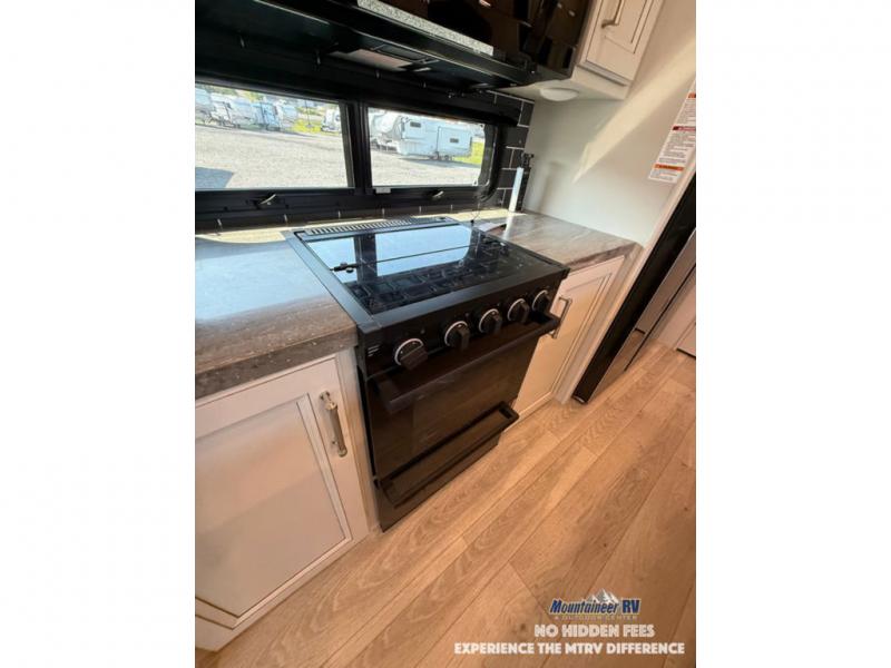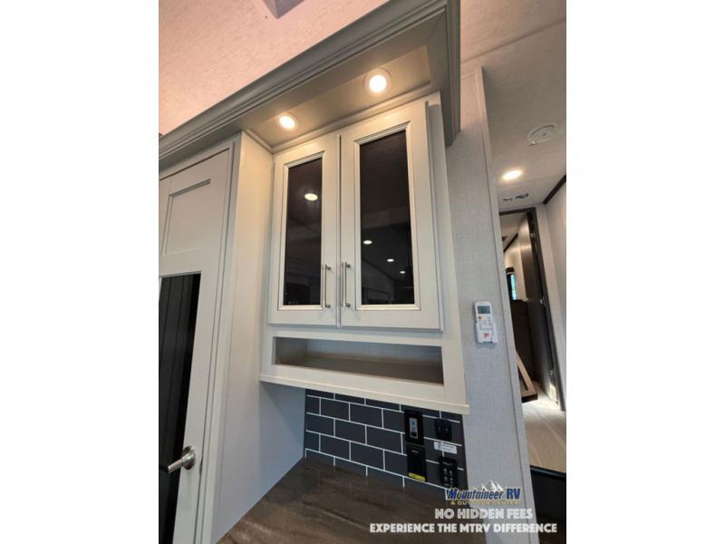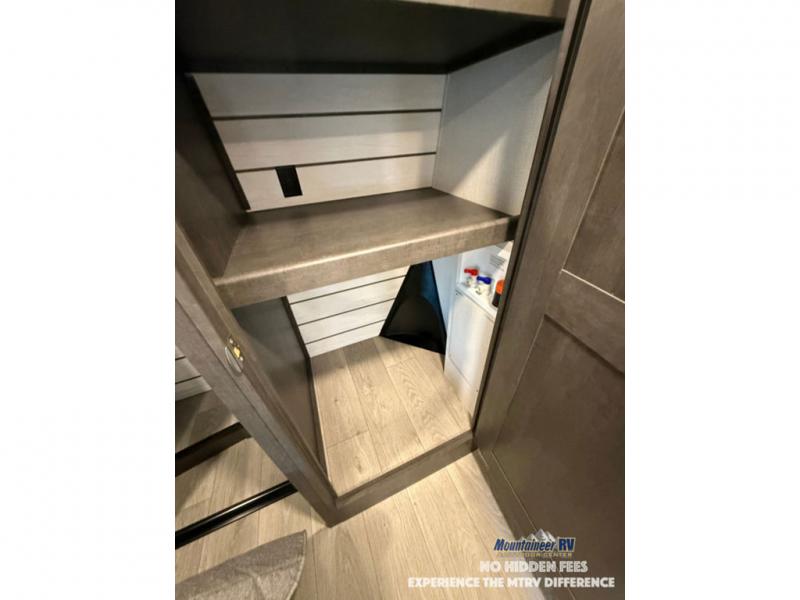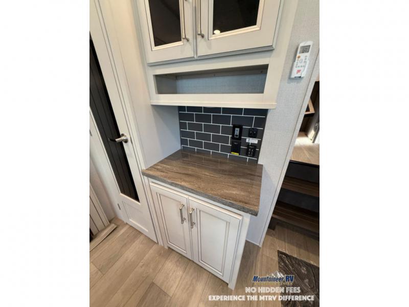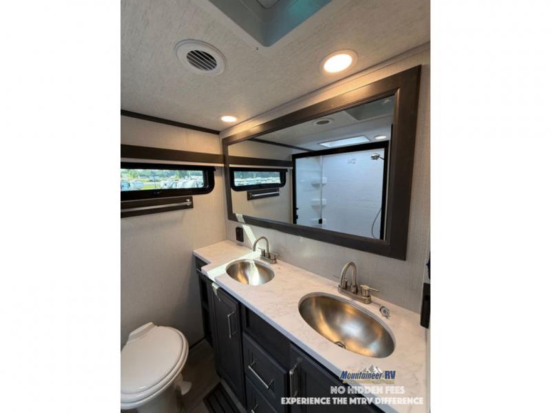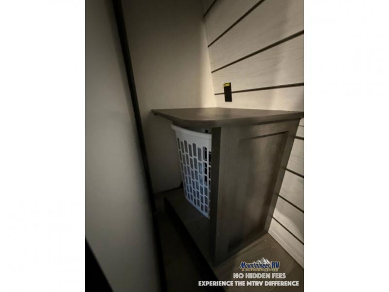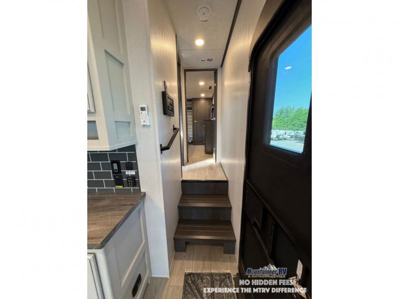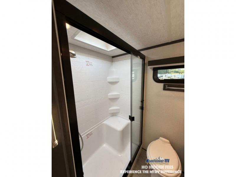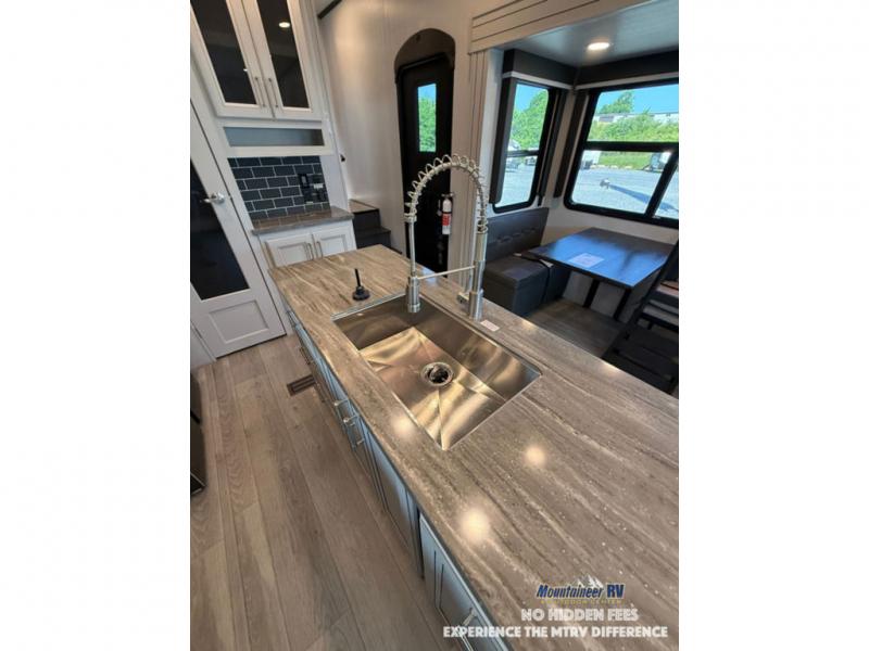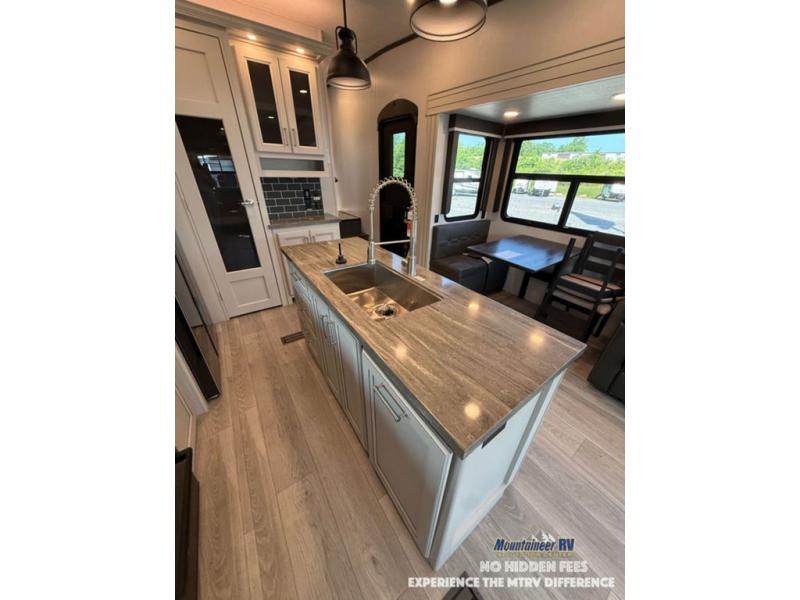 The dual-sink vanity in the full bathroom on this Cougar fifth wheel is what will make your morning routine feel just the same on the road as it does at home! You'll also sleep just as well on the queen-size bed in the front private bedroom, and there is under-bed storage, a full-height wardrobe, and a dresser with hidden storage for all of your personal belongings. As you spend time in the main living area, you'll appreciate having extra space thanks to the set of opposing slides, and the kitchen island will be easy to work around. You'll be able to relax on the tri-fold sleeper sofa and theater seating while you watch the LED HDTV with an pivoting entertainment door and hidden pantry. There is also a booth dinette with storage drawers, convenient shoe storage right as you enter the unit, and an exterior unobstructed pass-thru storage so nothing gets left behind.