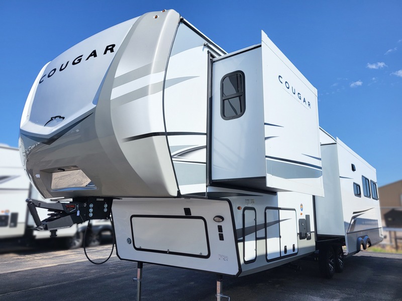Spend more time having fun and less time worrying about your RV with the Keystone Cougar fifth wheel! These units have all that you will need for excellent vacations. The interior comes with 5/8" one-piece DynaSpan® flooring, tall slide outs for added comfort and head room, night roller shades throughout, and residential, raised-panel hardwood cabinet doors and drawers. You will also enjoy decorative crown molding, a 5,500 BTU electric fireplace with thermostat control and remote, and a Max Air exhaust fan with rain sensor. The exterior is also fully outfitted with a convenience center, friction-hinge entry door, electric four-point auto leveling system, and Lippert SolidStep® on the main entry. Each model is available with the optional Hero Edition. By choosing this edition, you can help support our nation's heros and their families by contributing to the Wounded Warrior Project. This optional package features an industry exclusive full-body paint matte finish, frameless windows, a glass entry door, blackout rims, and green LED exterior accent lighting; see dealer for more details!