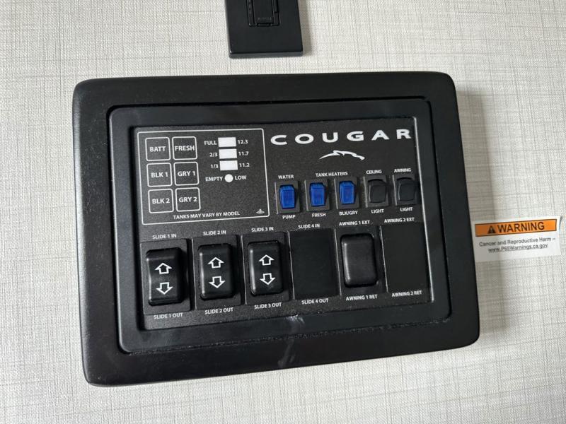 Spend more time having fun and less time worrying about your RV with the Keystone Cougar fifth wheel! These units have all that you will need for excellent vacations. The interior comes with 5/8" one-piece DynaSpan® flooring, tall slide outs for added comfort and head room, night roller shades throughout, and residential, raised-panel hardwood cabinet doors and drawers. You will also enjoy decorative crown molding, a 5,500 BTU electric fireplace with thermostat control and remote, and a Max Air exhaust fan with rain sensor. The exterior is also fully outfitted with a convenience center, friction-hinge entry door, electric four-point auto leveling system, and Lippert SolidStep® on the main entry. Each model is available with the optional Hero Edition. By choosing this edition, you can help support our nation's heros and their families by contributing to the Wounded Warrior Project. This optional package features an industry exclusive full-body paint matte finish, frameless windows, a glass entry door, blackout rims, and green LED exterior accent lighting; see dealer for more details!