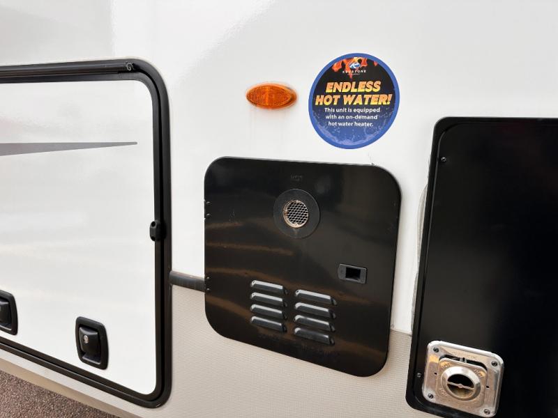 Spend more time having fun and less time worrying about your RV with the Keystone Cougar fifth wheel! These units have all that you will need for excellent vacations. The interior comes with 5/8" one-piece DynaSpan® flooring, tall slide outs for added comfort and head room, night roller shades throughout, and residential, raised-panel hardwood cabinet doors and drawers. You will also enjoy decorative crown molding, a 5,500 BTU electric fireplace with thermostat control and remote, and a Max Air exhaust fan with rain sensor. The exterior is also fully outfitted with a convenience center, friction-hinge entry door, electric four-point auto leveling system, and Lippert SolidStep® on the main entry. There is a full pass-through storage with slam-latch baggage doors, an industry-best 80-gallon fresh tank capacity, a 2" accessory hitch with 300-LB storage capacity, and an outside shower.