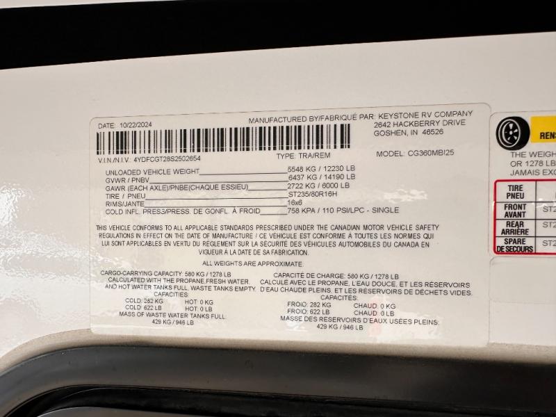 New 2025 Keystone RV Cougar 360MBI * New Mid-Bunk * Fifth Wheel