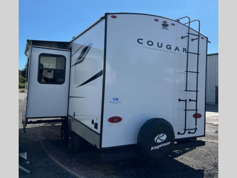 The Keystone Cougar Half-Ton fifth wheel and travel trailers are known as one of America's favorites for a reason! Some of those reasons are the exclusive features that come from Keystone, like the Winegard Air 360+ omni-directional rooftop antenna, the in-floor heating ducts, and the Hyper Deck flooring. The Cougar Half-Ton has a Climate Guard protection package to keep you safe during inclement weather, along with two roof attic vents, PEX plumbing and more. Use the 21" Furrion range with Piezo ignition to create all of those familiar meals from home, and take charge of how you camp with the SolarFlex Protect that comes standard, or upgrade to a larger package or lithium batteries for even more off-grid capabilities.
