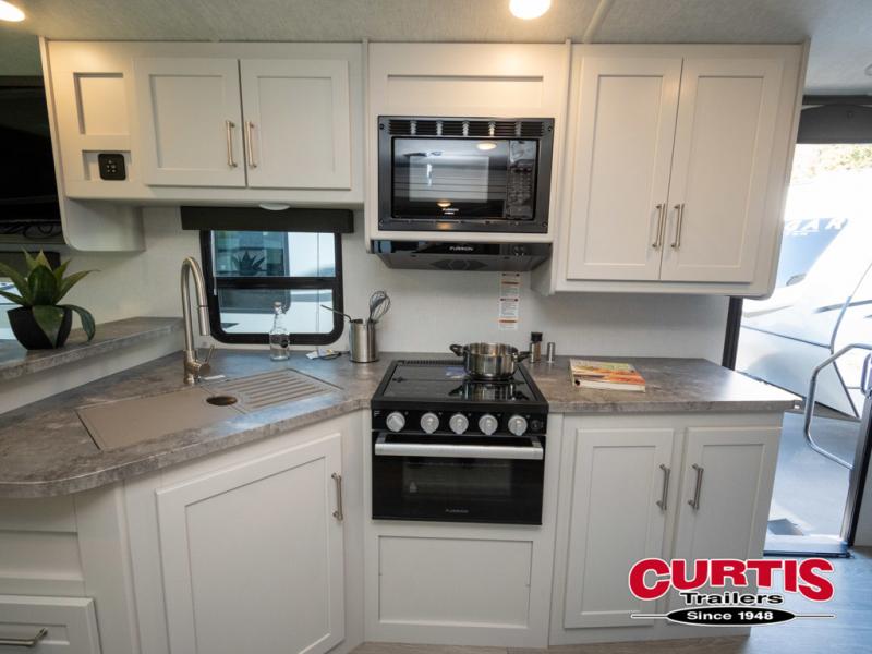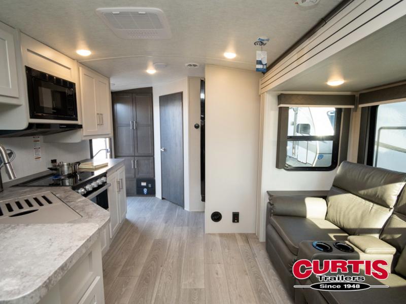 The Keystone Cougar Half-Ton fifth wheel and travel trailers are known as one of America's favorites for a reason! Some of those reasons are the exclusive features that come from Keystone, like the Winegard Air 360+ omni-directional rooftop antenna, the in-floor heating ducts, and the Hyper Deck flooring. The Cougar Half-Ton has a Climate Guard protection package to keep you safe during inclement weather, along with two roof attic vents, PEX plumbing and more. Use the 21" Furrion range with Piezo ignition to create all of those familiar meals from home, and enjoy endless hot showers with the Girard tankless on-demand water heater!