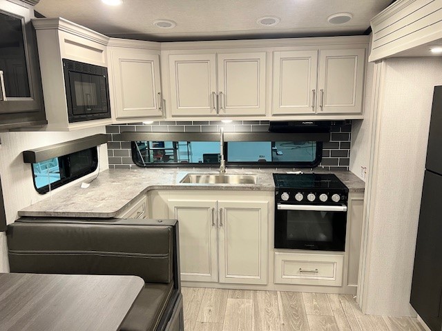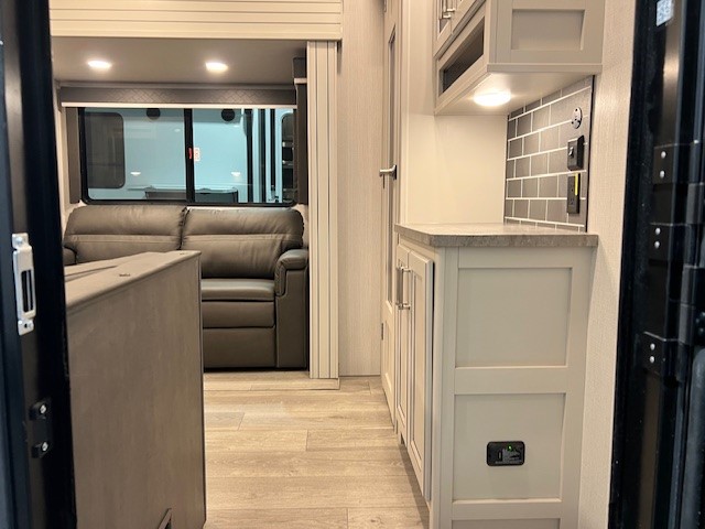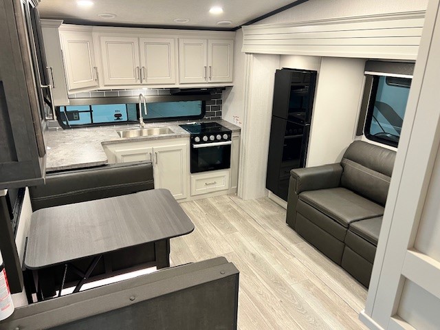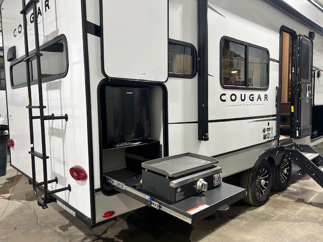 This Cougar Half-Ton fifth wheel features a rear kitchen with great storage!