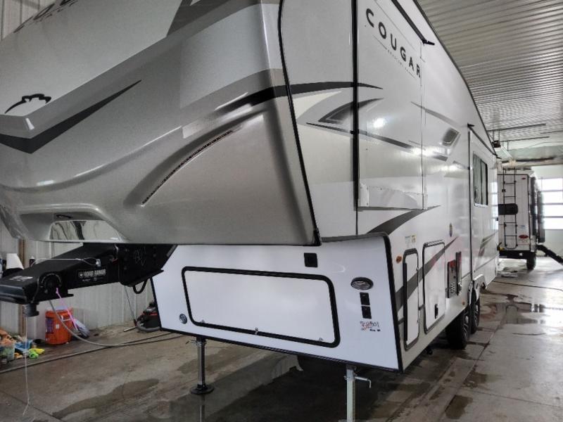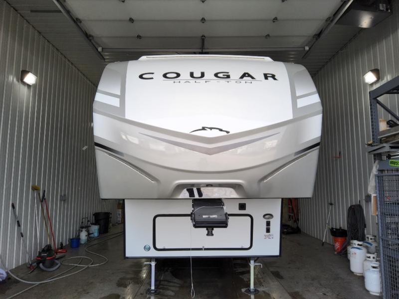 The Keystone Cougar Half-Ton fifth wheel and travel trailers are known as one of America's favorites for a reason! Some of those reasons are the exclusive features that come from Keystone, like the Winegard Air 360+ omni-directional rooftop antenna, the in-floor heating ducts, and the Hyper Deck flooring. The Cougar Half-Ton has a Climate Guard protection package to keep you safe during inclement weather, along with two roof attic vents, PEX plumbing and more. Use the 21" Furrion range with Piezo ignition to create all of those familiar meals from home, and enjoy endless hot showers with the Girard tankless on-demand water heater!