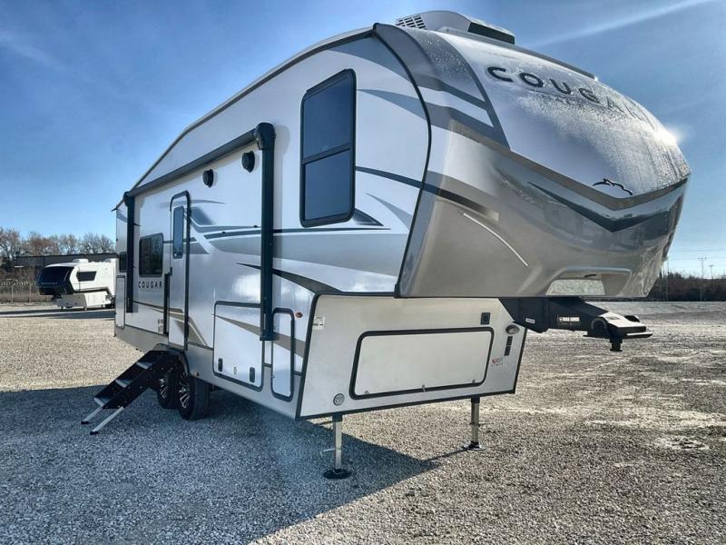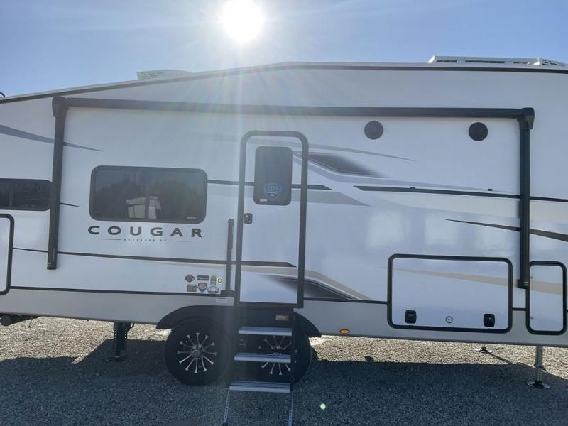 The Keystone Cougar Half-Ton fifth wheel and travel trailers are known as one of America's favorites for a reason! Some of those reasons are the exclusive features that come from Keystone, like the Winegard Air 360+ omni-directional rooftop antenna, the in-floor heating ducts, and the Hyper Deck flooring. The Cougar Half-Ton has a Climate Guard protection package to keep you safe during inclement weather, along with two roof attic vents, PEX plumbing and more. Use the 21" Furrion range with Piezo ignition to create all of those familiar meals from home, and enjoy endless hot showers with the Girard tankless on-demand water heater!