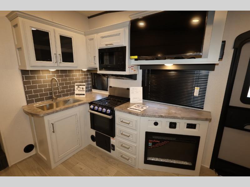 Spend your weekends in comfort with this Cougar Half-Ton fifth wheel! A full bathroom with a linen closet and shower with seat will provide convenience no matter where you've chosen to camp. You'll also be grateful to find a full kitchen with a 21" Furrion range with Piezo ignition and microwave so that you can get dinner ready in no time at all, and the private bedroom up front is where you will want to be at the end of a long day. You'll also love the fireplace in the main living area to make your space feel more like home!
