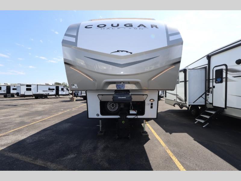The Keystone Cougar Half-Ton fifth wheel and travel trailers are known as one of America's favorites for a reason! Some of those reasons are the exclusive features that come from Keystone, like the Winegard Air 360+ omni-directional rooftop antenna, the in-floor heating ducts, and the Hyper Deck flooring. The Cougar Half-Ton has a Climate Guard protection package to keep you safe during inclement weather, along with two roof attic vents, PEX plumbing and more. Use the 21" Furrion range with Piezo ignition to create all of those familiar meals from home, and enjoy endless hot showers with the Girard tankless on-demand water heater!