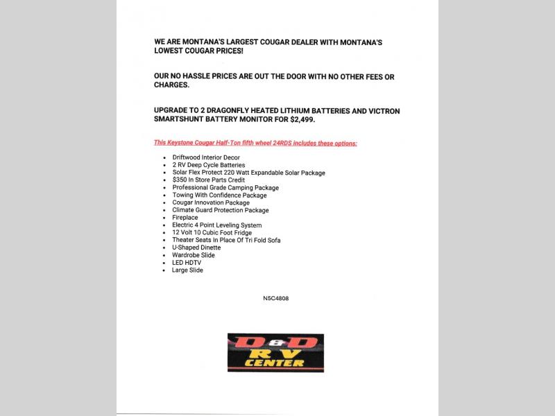 WE ARE MONTANA'S LARGEST COUGAR DEALER WITH MONTANA'S LOWEST COUGAR PRICES!