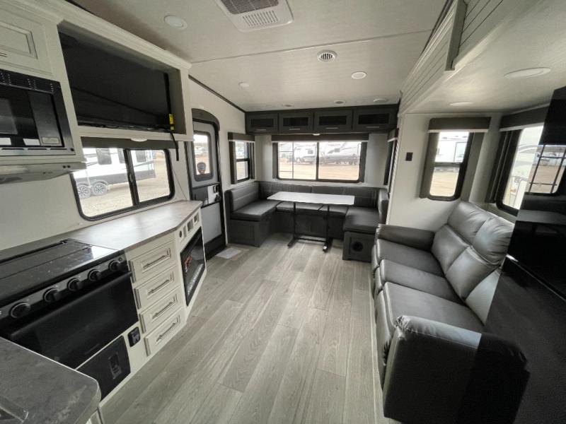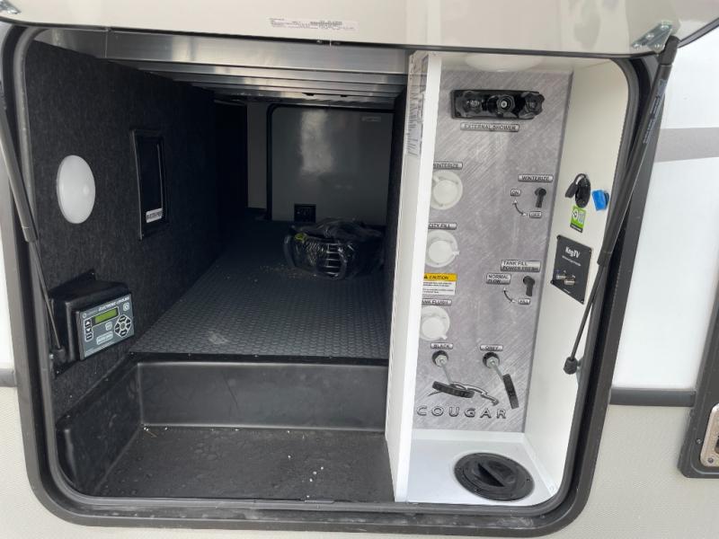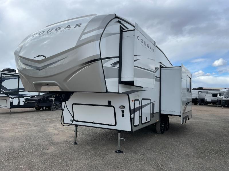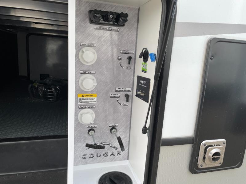 The Keystone Cougar Half-Ton fifth wheel and travel trailers are known as one of America's favorites for a reason! Some of those reasons are the exclusive features that come from Keystone, like the Winegard Air 360+ omni-directional rooftop antenna, the in-floor heating ducts, and the Hyper Deck flooring. The Cougar Half-Ton has a Climate Guard protection package to keep you safe during inclement weather, along with two roof attic vents, PEX plumbing and more. Use the 21" Furrion range with Piezo ignition to create all of those familiar meals from home, and enjoy endless hot showers with the Girard tankless on-demand water heater!