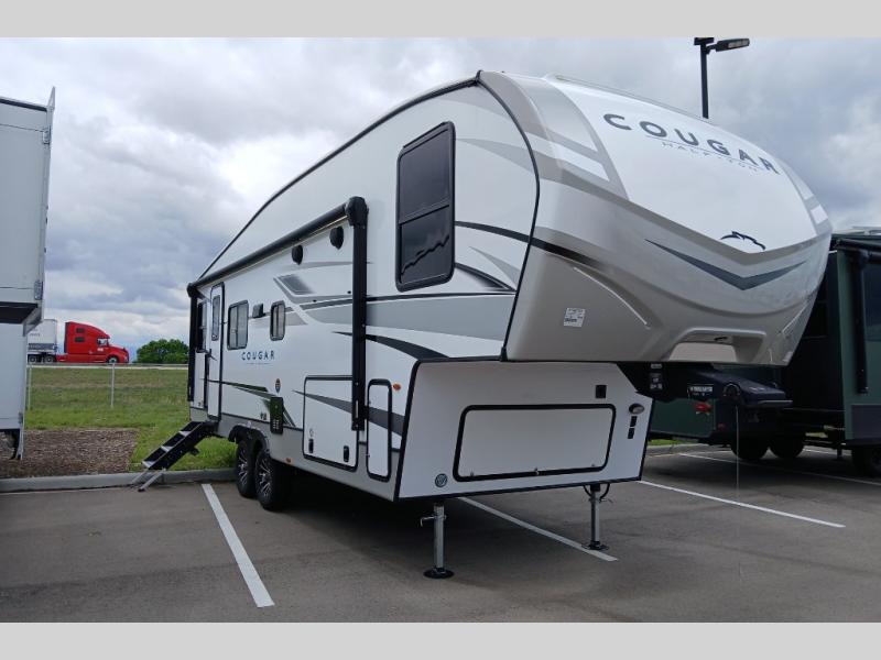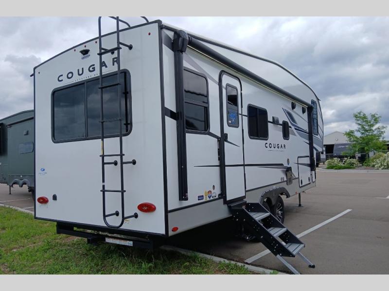 The Keystone Cougar Half-Ton fifth wheel and travel trailers are known as one of America's favorites for a reason! Some of those reasons are the exclusive features that come from Keystone, like the Winegard Air 360+ omni-directional rooftop antenna, the in-floor heating ducts, and the Hyper Deck flooring. The Cougar Half-Ton has a Climate Guard protection package to keep you safe during inclement weather, along with two roof attic vents, PEX plumbing and more. Use the 21" Furrion range with Piezo ignition to create all of those familiar meals from home, and enjoy endless hot showers with the Girard tankless on-demand water heater!