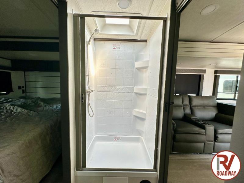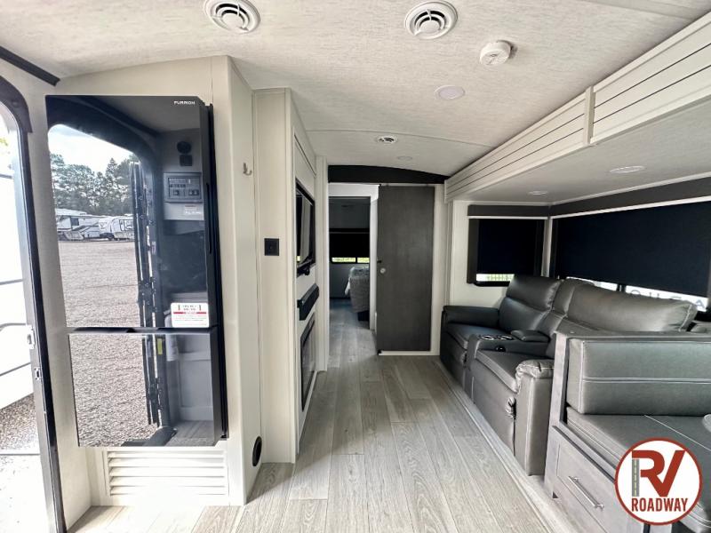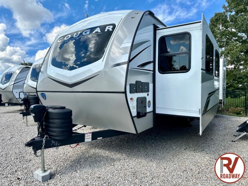 The Keystone Cougar Half-Ton fifth wheel and travel trailers are known as one of America's favorites for a reason! Some of those reasons are the exclusive features that come from Keystone, like the Winegard Air 360+ omni-directional rooftop antenna, the in-floor heating ducts, and the Hyper Deck flooring. The Cougar Half-Ton has a Climate Guard protection package to keep you safe during inclement weather, along with two roof attic vents, PEX plumbing and more. Use the 21" Furrion range with Piezo ignition to create all of those familiar meals from home, and take charge of how you camp with the SolarFlex Protect that comes standard, or upgrade to a larger package or lithium batteries for even more off-grid capabilities.