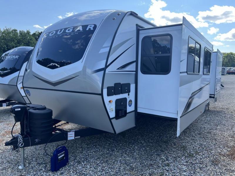 The Keystone Cougar Half-Ton fifth wheel and travel trailers are known as one of America's favorites for a reason! Some of those reasons are the exclusive features that come from Keystone, like the Winegard Air 360+ omni-directional rooftop antenna, the in-floor heating ducts, and the Hyper Deck flooring. The Cougar Half-Ton has a Climate Guard protection package to keep you safe during inclement weather, along with two roof attic vents, PEX plumbing and more. Use the 17" Furrion range with Piezo ignition to create all of those familiar meals from home, and enjoy endless hot showers with the Girard tankless on-demand water heater!