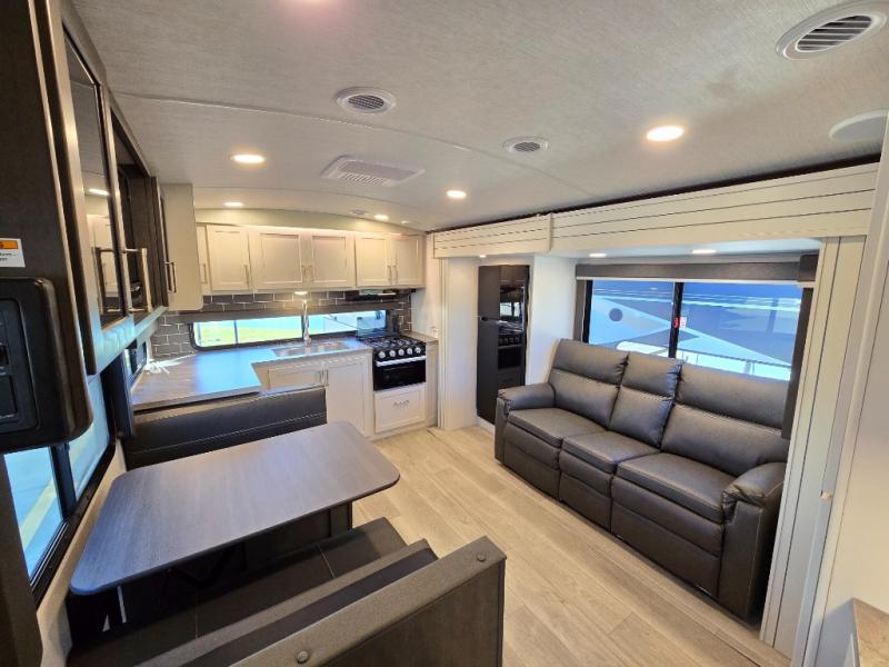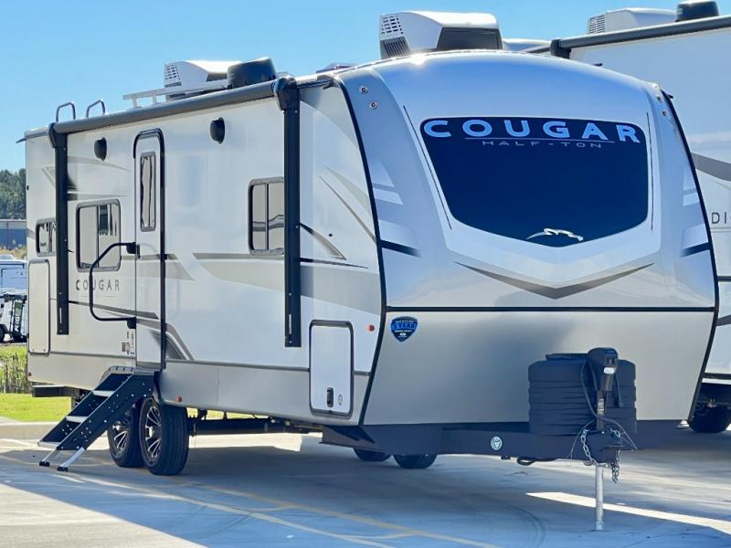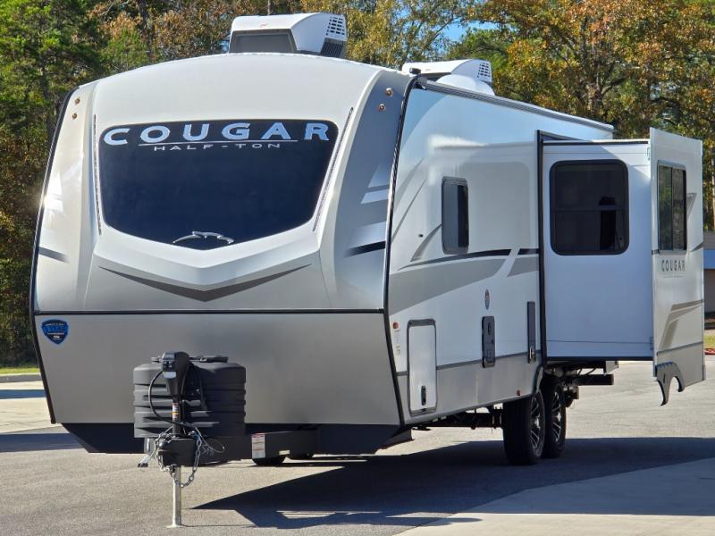 The Keystone Cougar Half-Ton fifth wheel and travel trailers are known as one of America's favorites for a reason! Some of those reasons are the exclusive features that come from Keystone, like the Winegard Air 360+ omni-directional rooftop antenna, the in-floor heating ducts, and the Hyper Deck flooring. The Cougar Half-Ton has a Climate Guard protection package to keep you safe during inclement weather, along with two roof attic vents, PEX plumbing and more. Use the 21" Furrion range with Piezo ignition to create all of those familiar meals from home, and enjoy endless hot showers with the Girard tankless on-demand water heater!