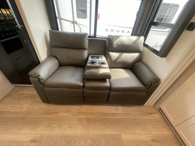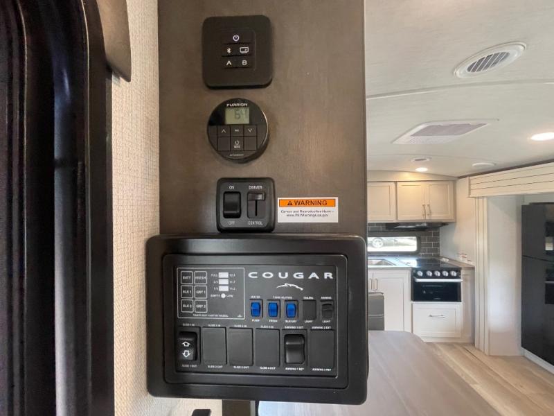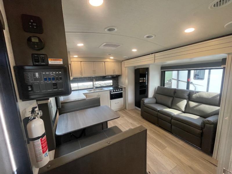 The Keystone Cougar Half-Ton fifth wheel and travel trailers are known as one of America's favorites for a reason! Some of those reasons are the exclusive features that come from Keystone, like the Winegard Air 360+ omni-directional rooftop antenna, the in-floor heating ducts, and the Hyper Deck flooring. The Cougar Half-Ton has a Climate Guard protection package to keep you safe during inclement weather, along with two roof attic vents, PEX plumbing and more. Use the 17" Furrion range with Piezo ignition to create all of those familiar meals from home, and enjoy endless hot showers with the Girard tankless on-demand water heater!