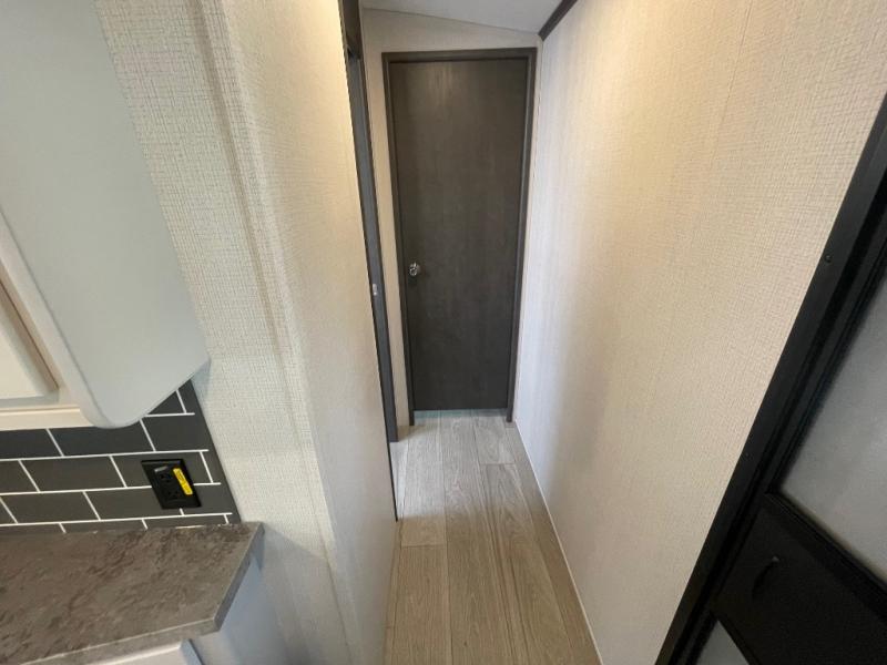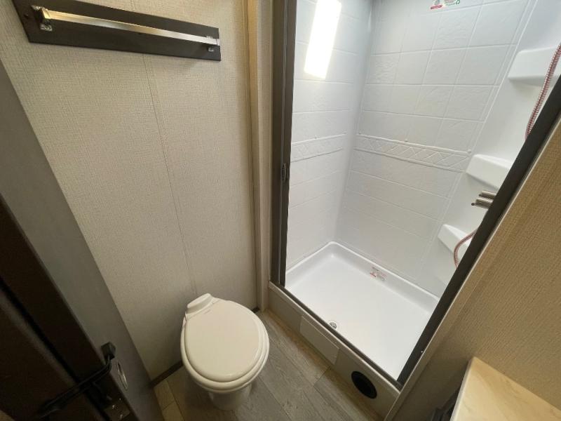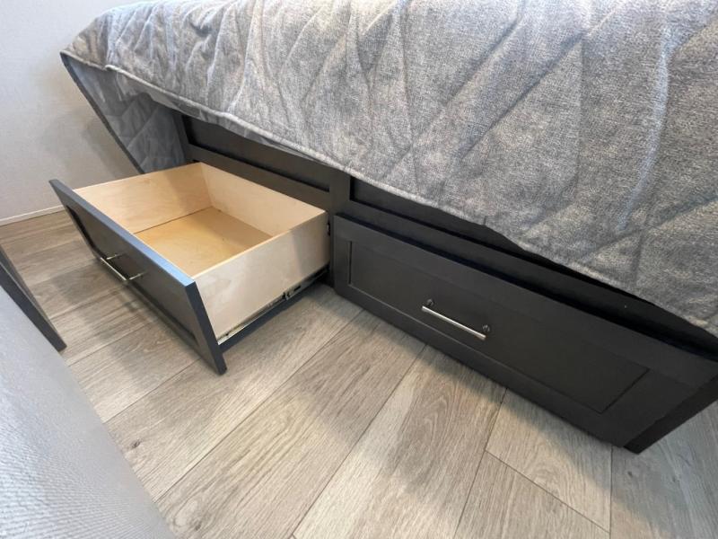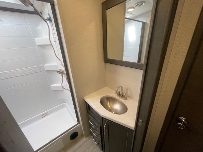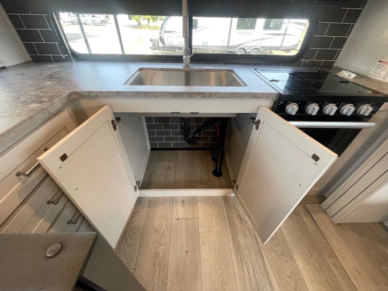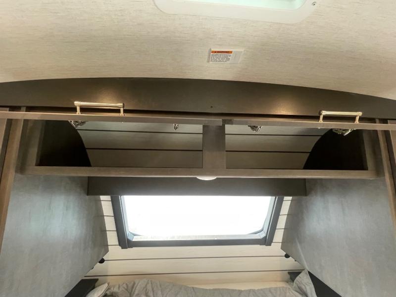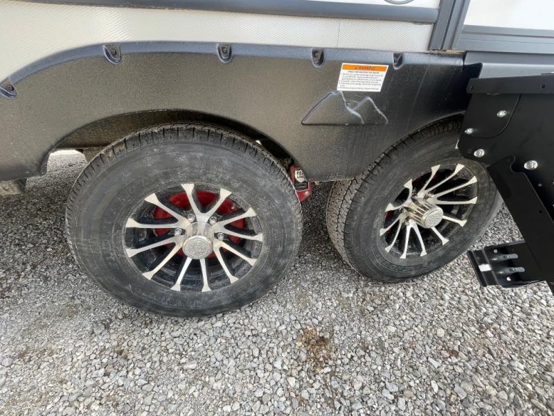 If you're ready for fun summers at the lake, make your adventures complete with this travel trailer in tow. The rear kitchen includes ample counter space to prep burgers, and you can take your preparations outside to cook on the outdoor kitchen! If the weather is nice, you might just want to eat outside too under the 18' power awning, or dine inside at the booth dinette. There is also a tri-fold sleeper sofa within the large slide out and an LED HDTV for movie nights. You'll find plenty of storage throughout, including a kitchen pantry, overhead cabinets, plus dual bedroom wardrobes on either side of the king bed!