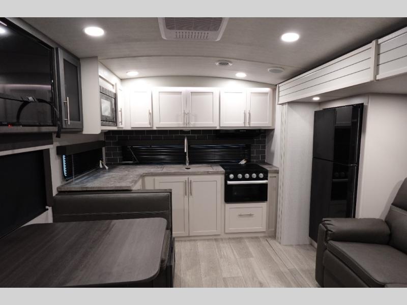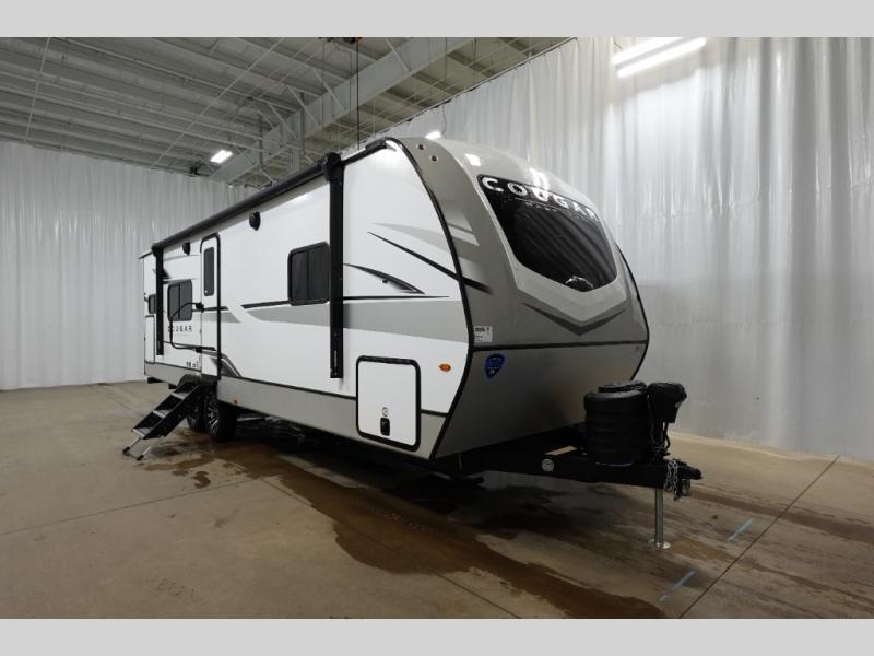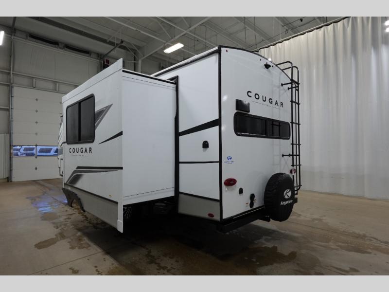 The Keystone Cougar Half-Ton fifth wheel and travel trailers are known as one of America's favorites for a reason! Some of those reasons are the exclusive features that come from Keystone, like the Winegard Air 360+ omni-directional rooftop antenna, the in-floor heating ducts, and the Hyper Deck flooring. The Cougar Half-Ton has a Climate Guard protection package to keep you safe during inclement weather, along with two roof attic vents, PEX plumbing and more. Use the 17" Furrion range with Piezo ignition to create all of those familiar meals from home, and enjoy endless hot showers with the Girard tankless on-demand water heater!