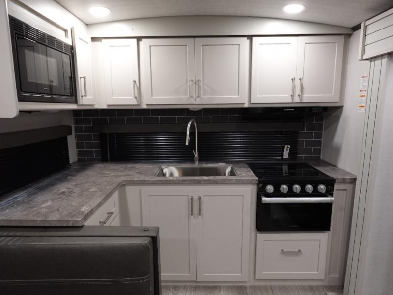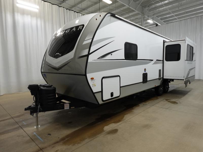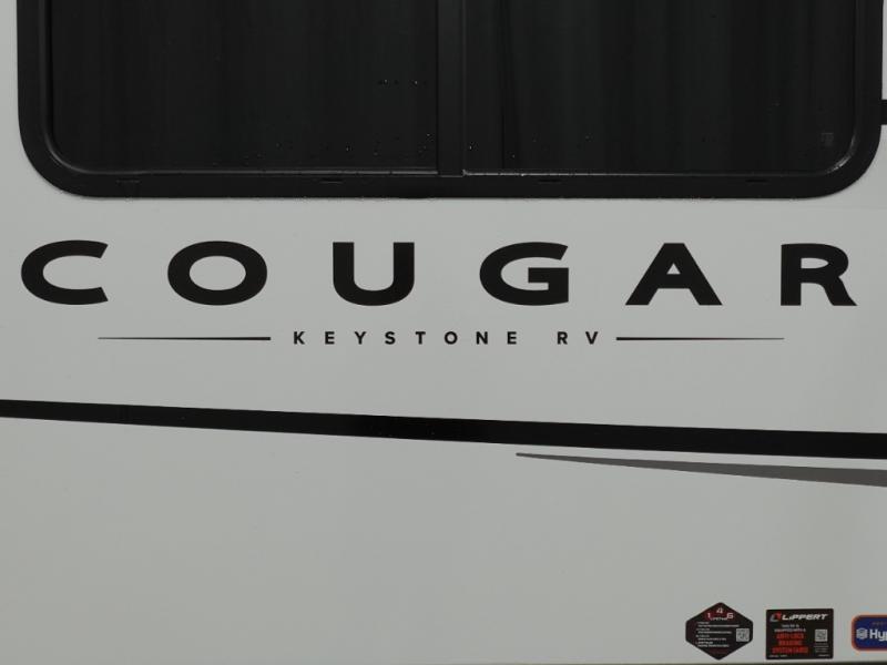 The Keystone Cougar Half-Ton fifth wheel and travel trailers are known as one of America's favorites for a reason! Some of those reasons are the exclusive features that come from Keystone, like the Winegard Air 360+ omni-directional rooftop antenna, the in-floor heating ducts, and the Hyper Deck flooring. The Cougar Half-Ton has a Climate Guard protection package to keep you safe during inclement weather, along with two roof attic vents, PEX plumbing and more. Use the 17" Furrion range with Piezo ignition to create all of those familiar meals from home, and enjoy endless hot showers with the Girard tankless on-demand water heater!