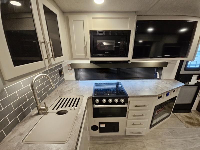 The Keystone Cougar Half-Ton fifth wheel and travel trailers are known as one of America's favorites for a reason! Some of those reasons are the exclusive features that come from Keystone, like the Winegard Air 360+ omni-directional rooftop antenna, the in-floor heating ducts, and the Hyper Deck flooring. The Cougar Half-Ton has a Climate Guard protection package to keep you safe during inclement weather, along with two roof attic vents, PEX plumbing and more. Use the 17" Furrion range with Piezo ignition to create all of those familiar meals from home, and enjoy endless hot showers with the Girard tankless on-demand water heater!