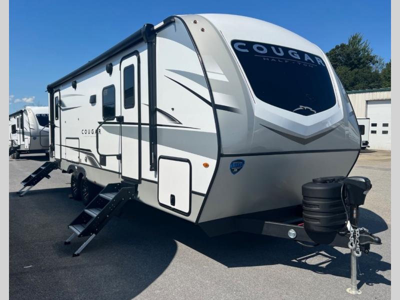 The Keystone Cougar Half-Ton fifth wheel and travel trailers are known as one of America's favorites for a reason! Some of those reasons are the exclusive features that come from Keystone, like the Winegard Air 360+ omni-directional rooftop antenna, the in-floor heating ducts, and the Hyper Deck flooring. The Cougar Half-Ton has a Climate Guard protection package to keep you safe during inclement weather, along with two roof attic vents, PEX plumbing and more. Use the 21" Furrion range with Piezo ignition to create all of those familiar meals from home, and take charge of how you camp with the SolarFlex Protect that comes standard, or upgrade to a larger package or lithium batteries for even more off-grid capabilities.