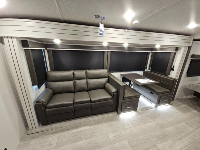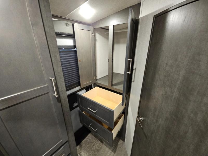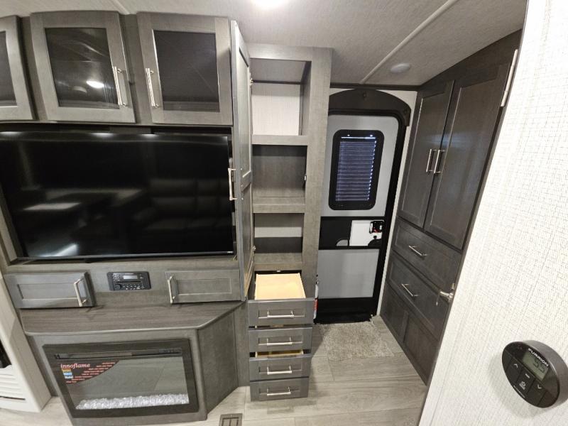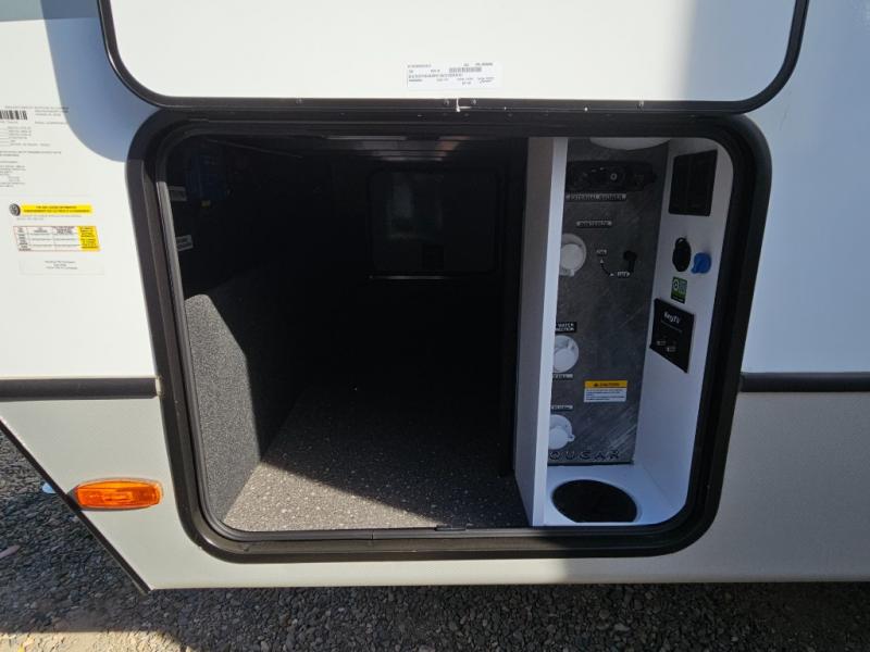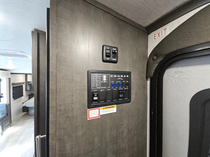 The Keystone Cougar Half-Ton fifth wheel and travel trailers are known as one of America's favorites for a reason! Some of those reasons are the exclusive features that come from Keystone, like the Winegard Air 360+ omni-directional rooftop antenna, the in-floor heating ducts, and the Hyper Deck flooring. The Cougar Half-Ton has a Climate Guard protection package to keep you safe during inclement weather, along with two roof attic vents, PEX plumbing and more. Use the 21" Furrion range with Piezo ignition to create all of those familiar meals from home, and enjoy endless hot showers with the Girard tankless on-demand water heater!