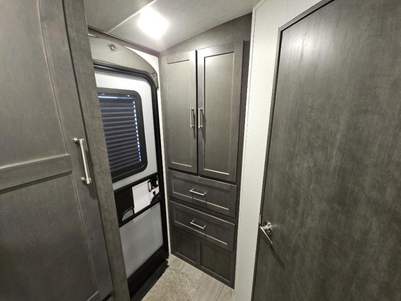 If you could cook outside or inside, which would it be? With this Cougar Half-Ton travel trailer, you get to decide that each time you make a meal. The outdoor grill and mini refrigerator are a great convenience while you play outside, and the interior kitchen pantry is located right next to the main entry door for quick access. You also have a second entry door that is located in the master bedroom as an added convenience. The main living area offers you plenty of seating and dining space with its 68" tri-fold sleeper sofa and booth dinette. You will surely enjoy sleeping on your own king bed at night and closing the door for privacy when you have overnight guests.