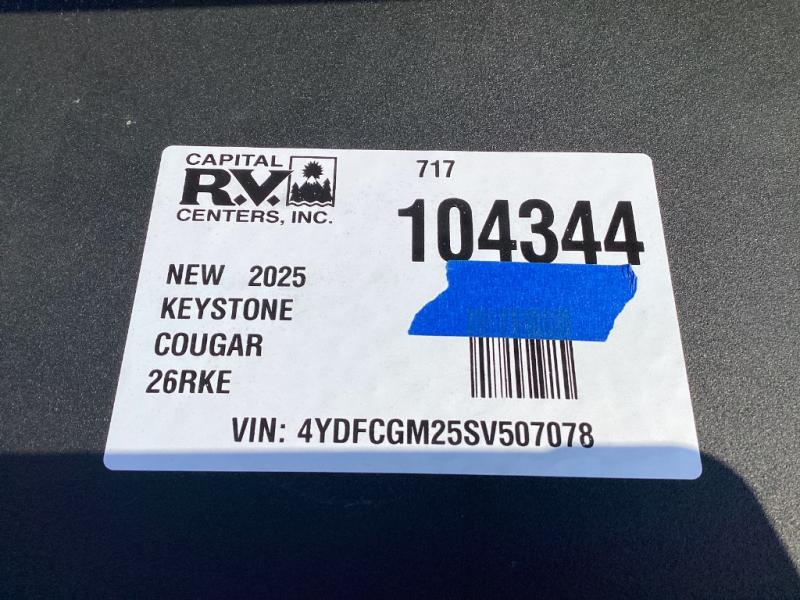 New 2025 Keystone RV Cougar Half-Ton 26RKE Fifth Wheel