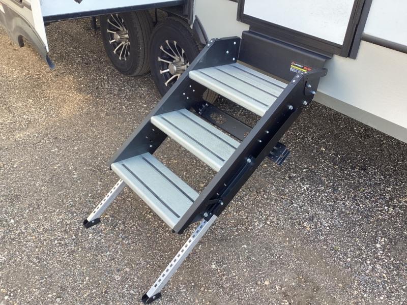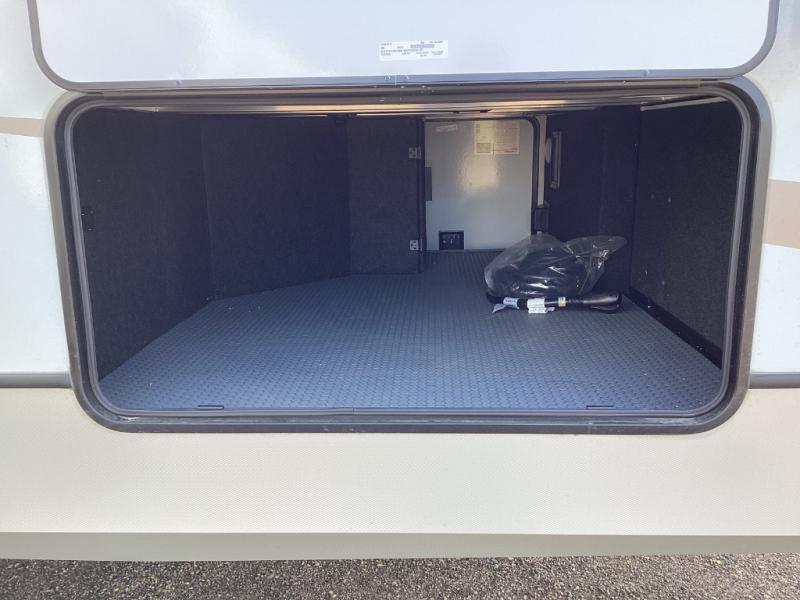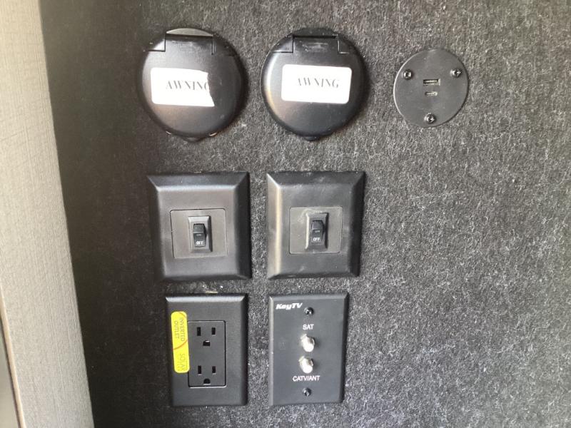 Includes two power awnings with LED lighting, a power tongue jack, and ample pass-through storage for all your gear.