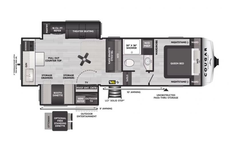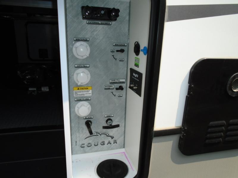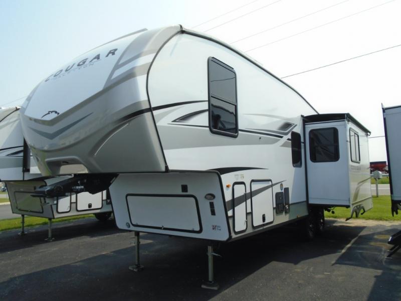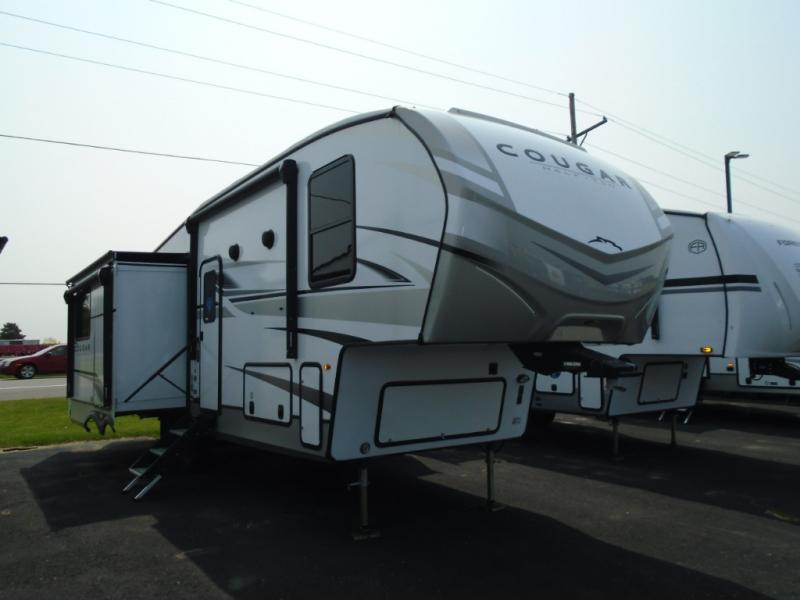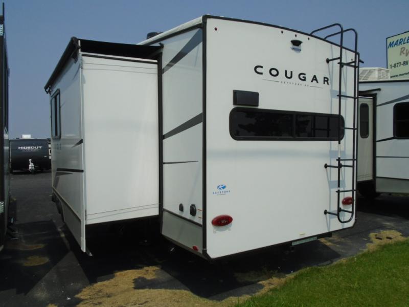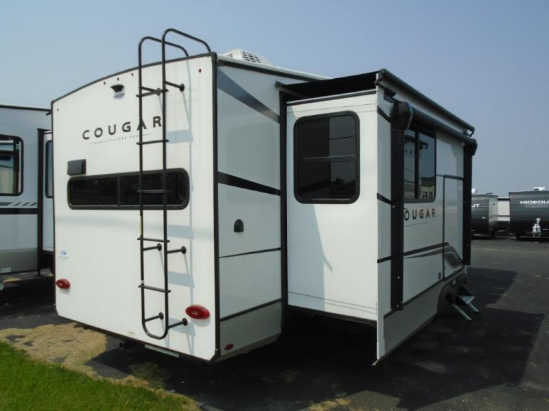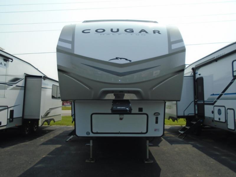 The Keystone Cougar Half-Ton fifth wheel and travel trailers are known as one of America's favorites for a reason! Some of those reasons are the exclusive features that come from Keystone, like the Winegard Air 360+ omni-directional rooftop antenna, the in-floor heating ducts, and the Hyper Deck flooring. The Cougar Half-Ton has a Climate Guard protection package to keep you safe during inclement weather, along with two roof attic vents, PEX plumbing and more. Use the 21" Furrion range with Piezo ignition to create all of those familiar meals from home, and enjoy endless hot showers with the Girard tankless on-demand water heater!