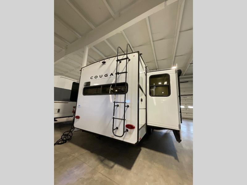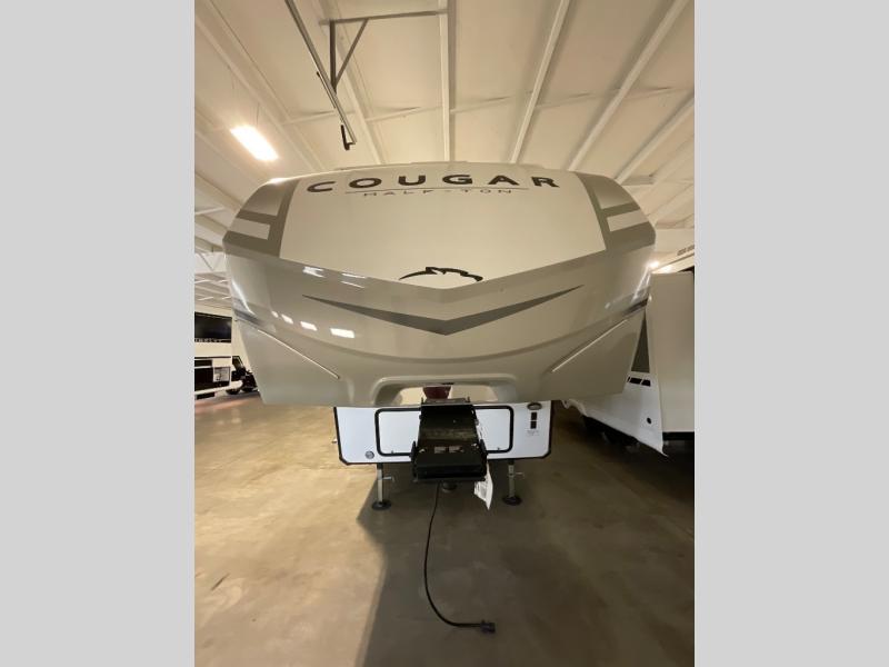 The Keystone Cougar Half-Ton fifth wheel and travel trailers are known as one of America's favorites for a reason! Some of those reasons are the exclusive features that come from Keystone, like the Winegard Air 360+ omni-directional rooftop antenna, the in-floor heating ducts, and the Hyper Deck flooring. The Cougar Half-Ton has a Climate Guard protection package to keep you safe during inclement weather, along with two roof attic vents, PEX plumbing and more. Use the 21" Furrion range with Piezo ignition to create all of those familiar meals from home, and enjoy endless hot showers with the Girard tankless on-demand water heater!