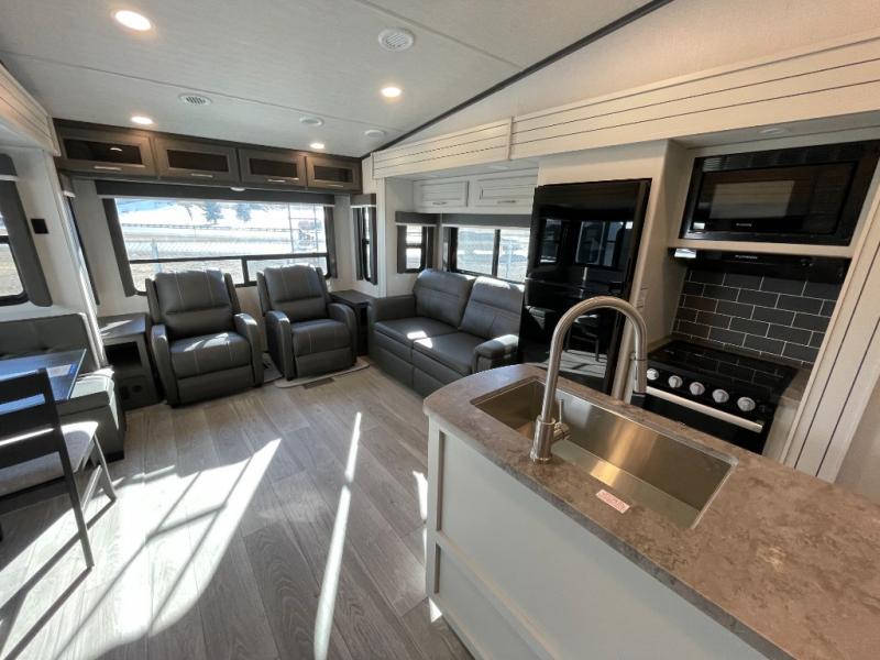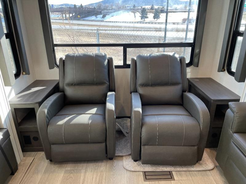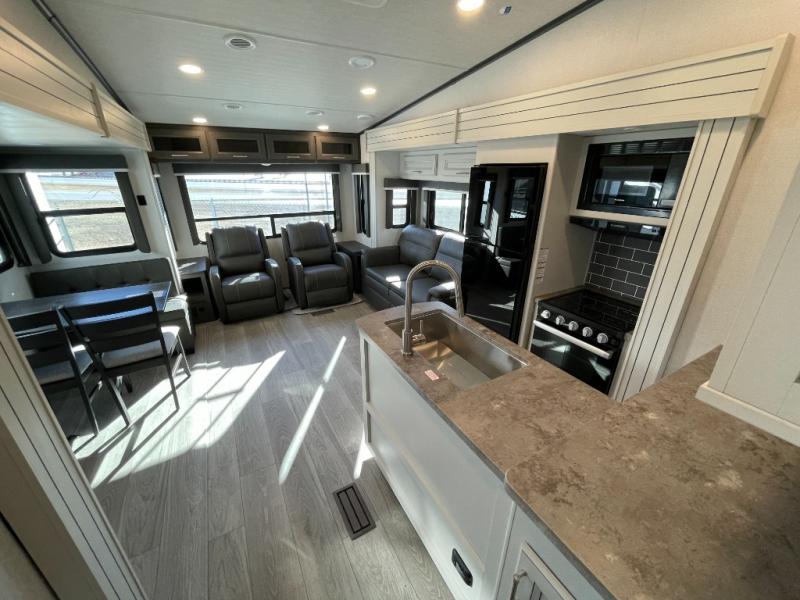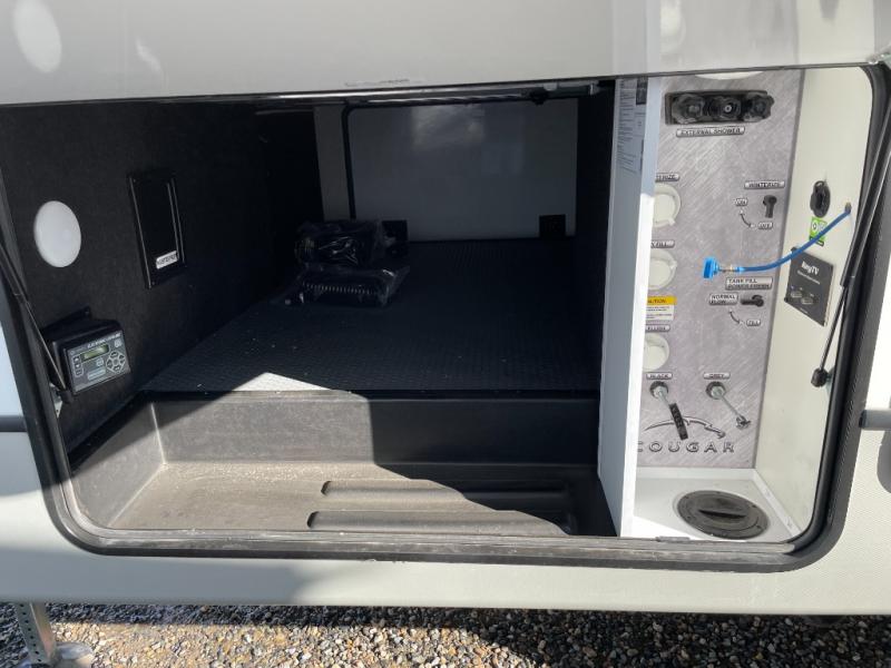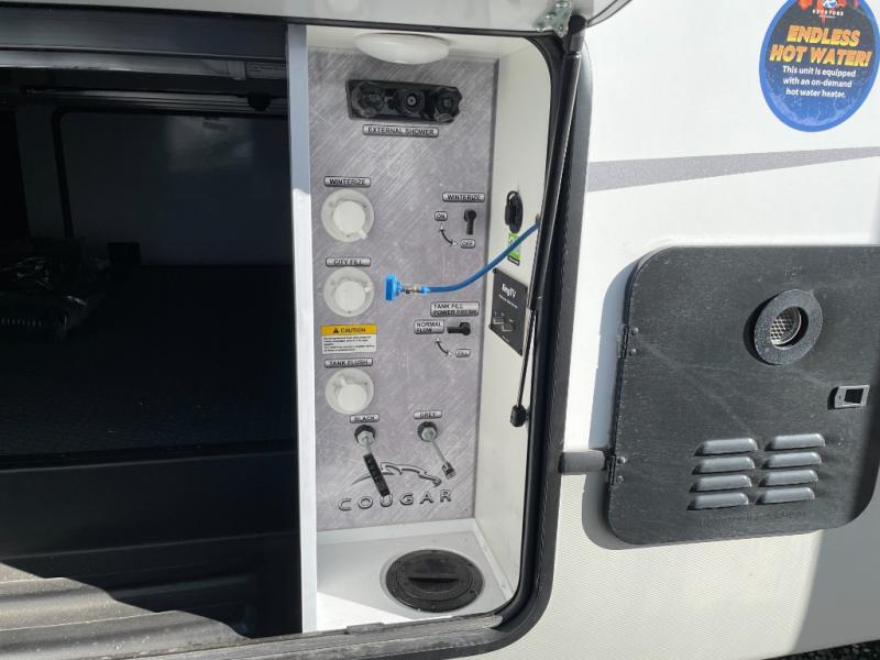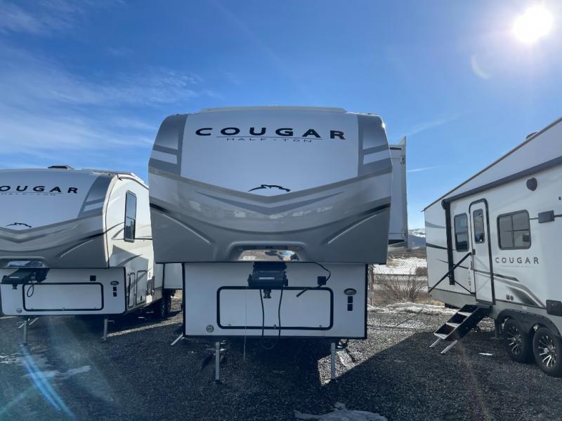 The Keystone Cougar Half-Ton fifth wheel and travel trailers are known as one of America's favorites for a reason! Some of those reasons are the exclusive features that come from Keystone, like the Winegard Air 360+ omni-directional rooftop antenna, the in-floor heating ducts, and the Hyper Deck flooring. The Cougar Half-Ton has a Climate Guard protection package to keep you safe during inclement weather, along with two roof attic vents, PEX plumbing and more. Use the 21" Furrion range with Piezo ignition to create all of those familiar meals from home, and enjoy endless hot showers with the Girard tankless on-demand water heater!