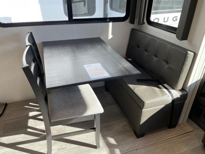 When you are ready to enjoy the fresh outdoor air, you'll want this Cougar Half-Ton fifth wheel to be there with you! The interior will feel spacious and comfortable because of the opposing slides, and you'll have plenty of seating to offer to any friends that stop by with the two recliners in the back, the booth dinette, and the 68" tri-fold sleeper sofa. You can sit down and chat, or you can head outside to grab some fresh air underneath the 10' power awning.
